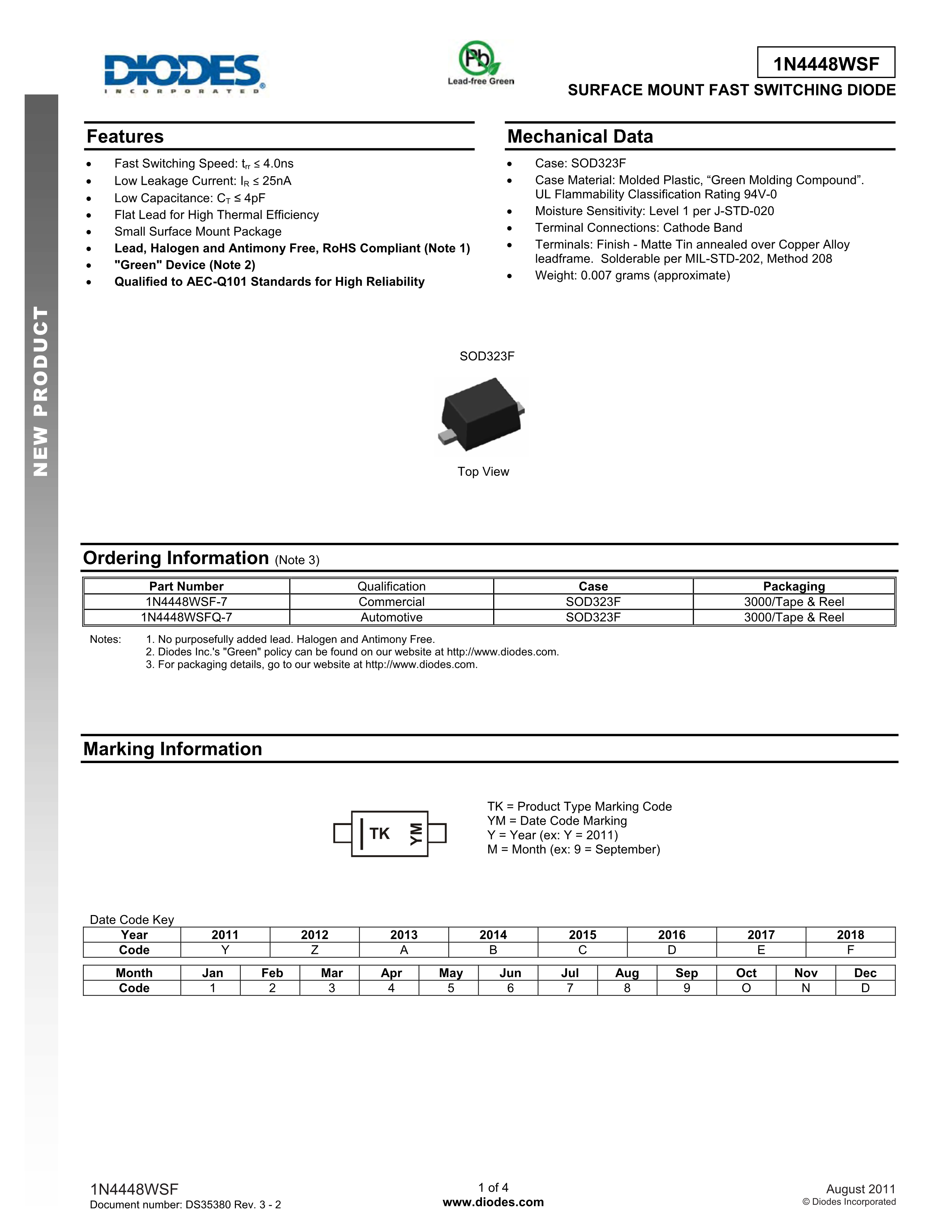 1N4448WSF-7数据手册SOD-323F封装DIODES(美台)PDF规格书,中英文下载