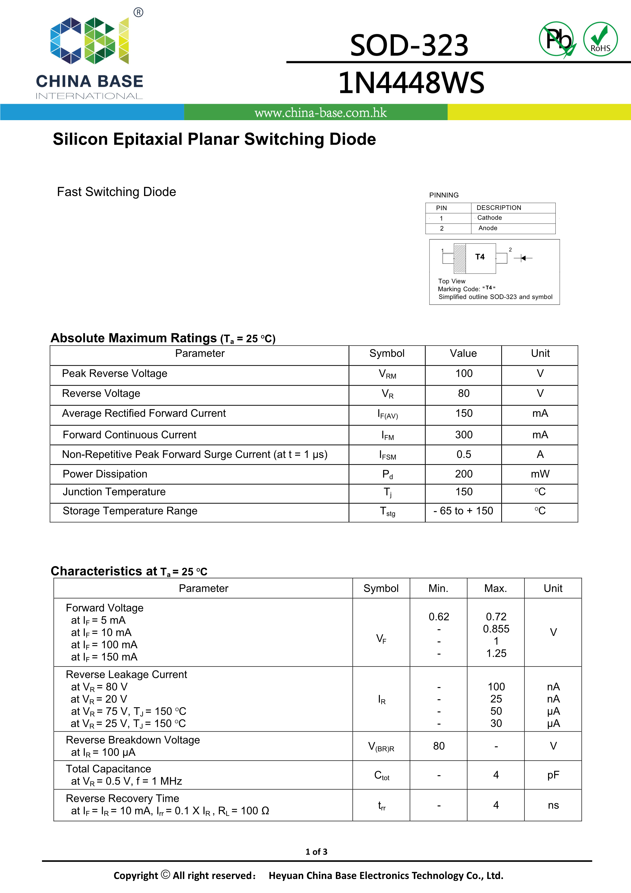 1N4448WS T4数据手册SOD-323封装CBI(创基)PDF规格书,中英文下载