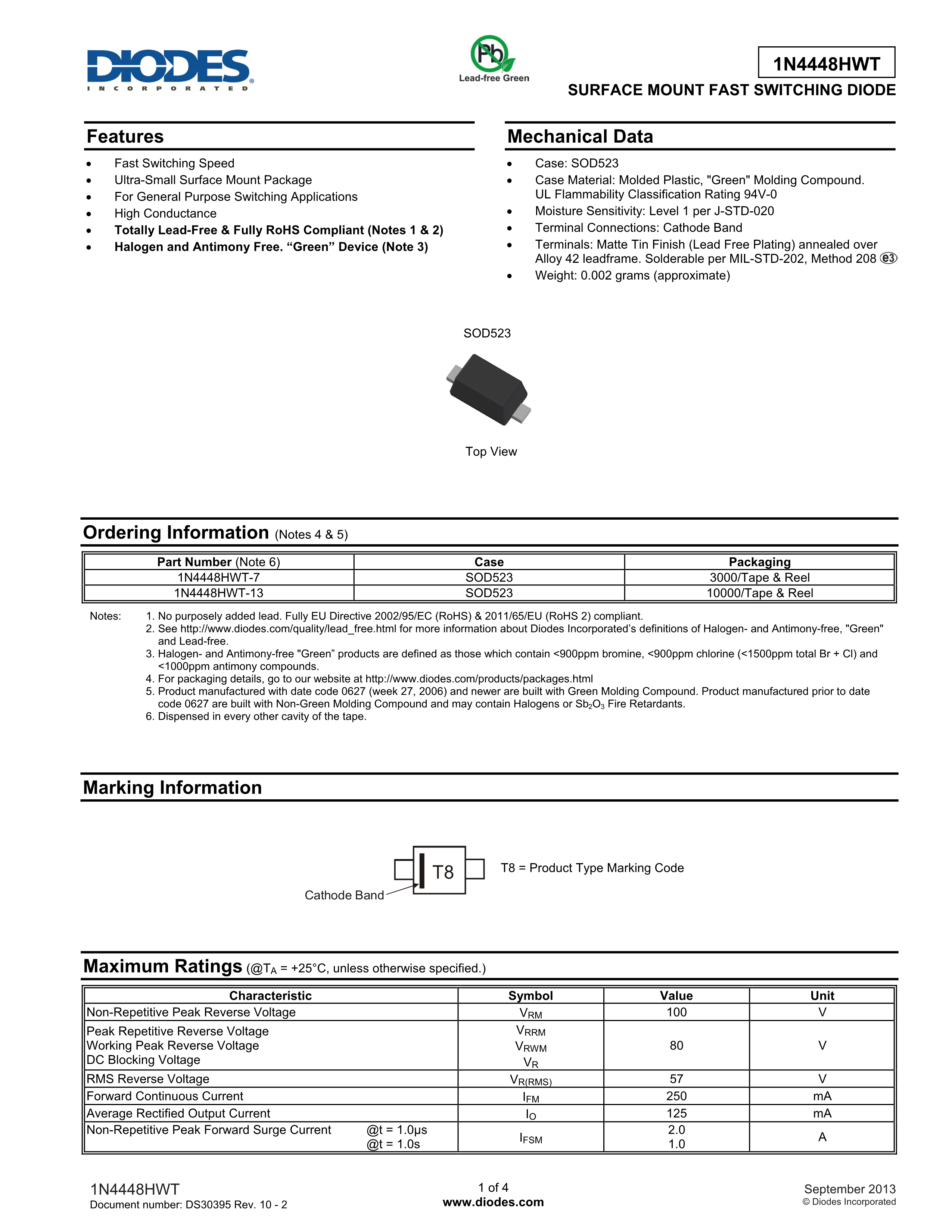 1N4448HWT-7数据手册SOD-523封装DIODES(美台)PDF规格书,中英文下载