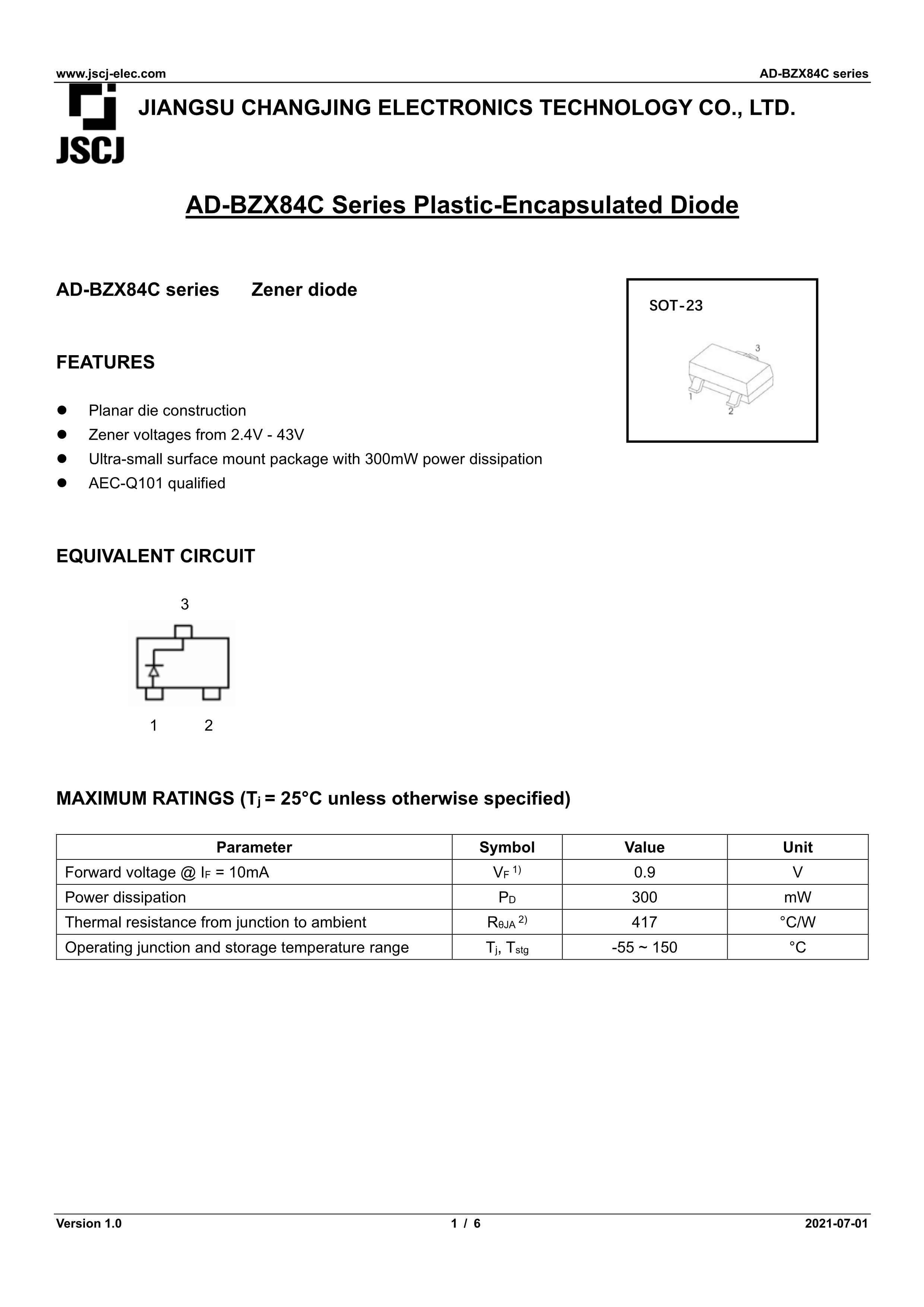 AD-BZX84C36数据手册SOT-23封装CJ(江苏长电-长晶)PDF规格书,中英文下载