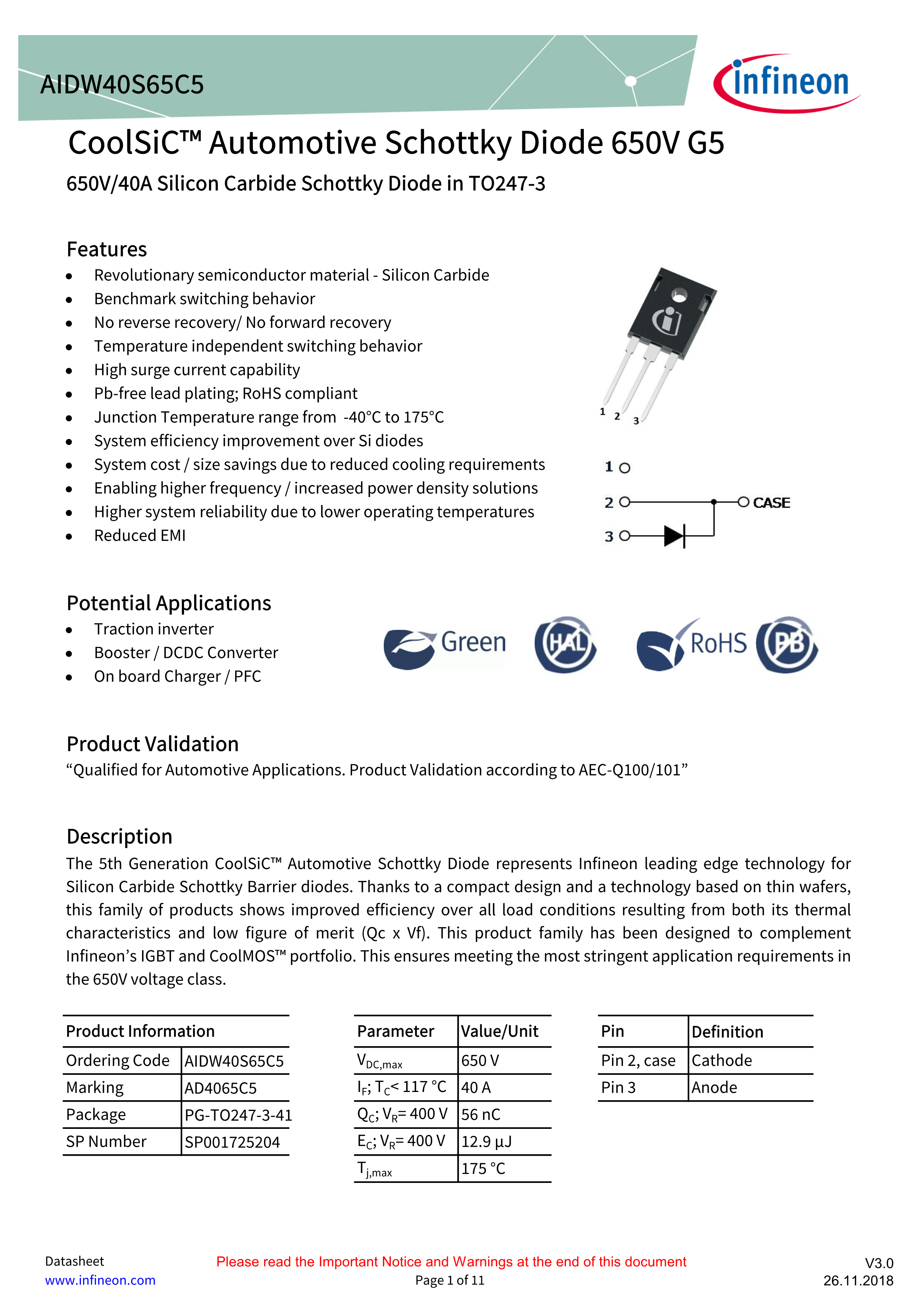 AIDW10S65C5数据手册PG-TO247-3-41封装Infineon(英飞凌)PDF规格书,