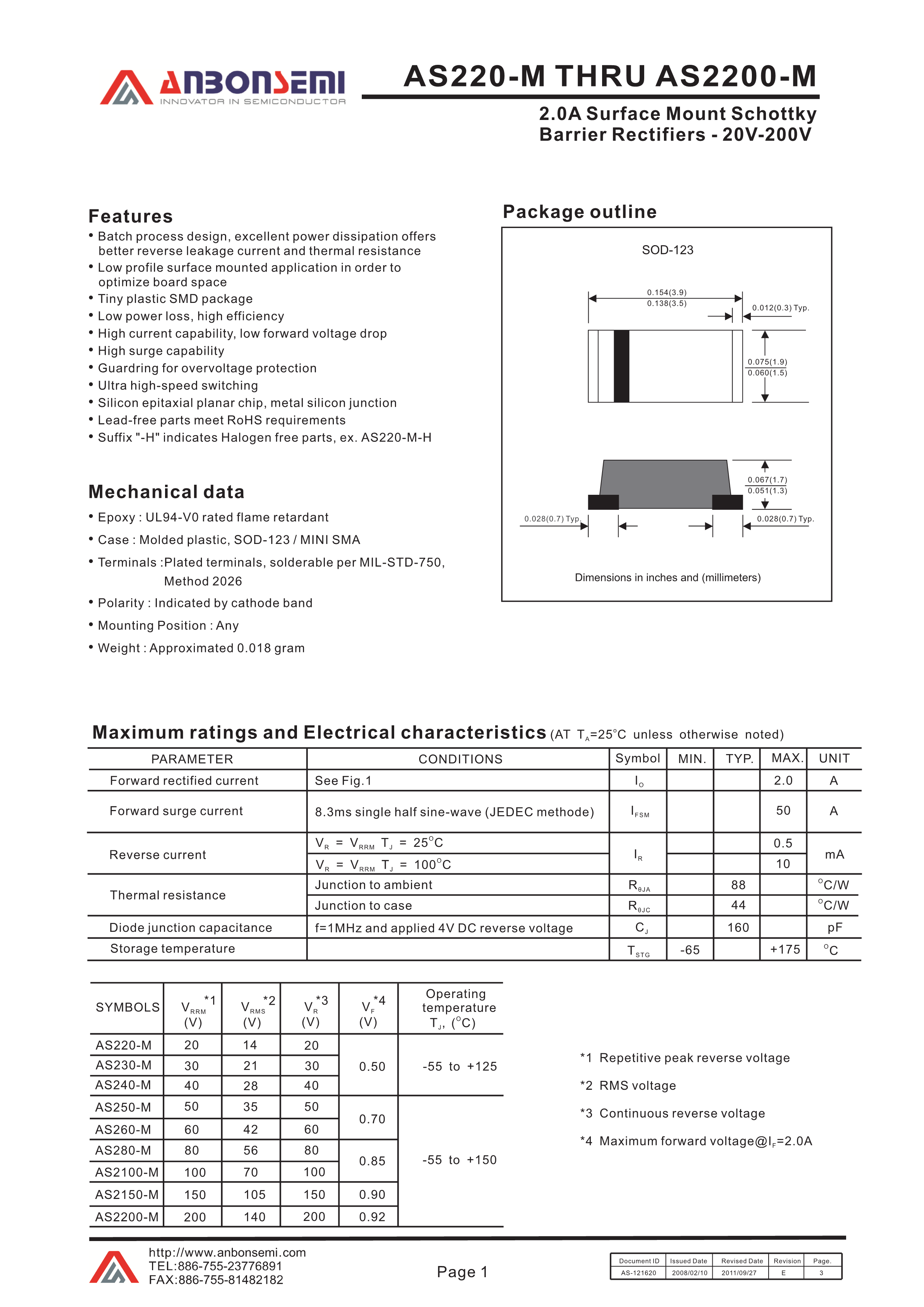AS260-M数据手册SOD-123封装AnBon(台湾安邦)PDF规格书,中英文下载