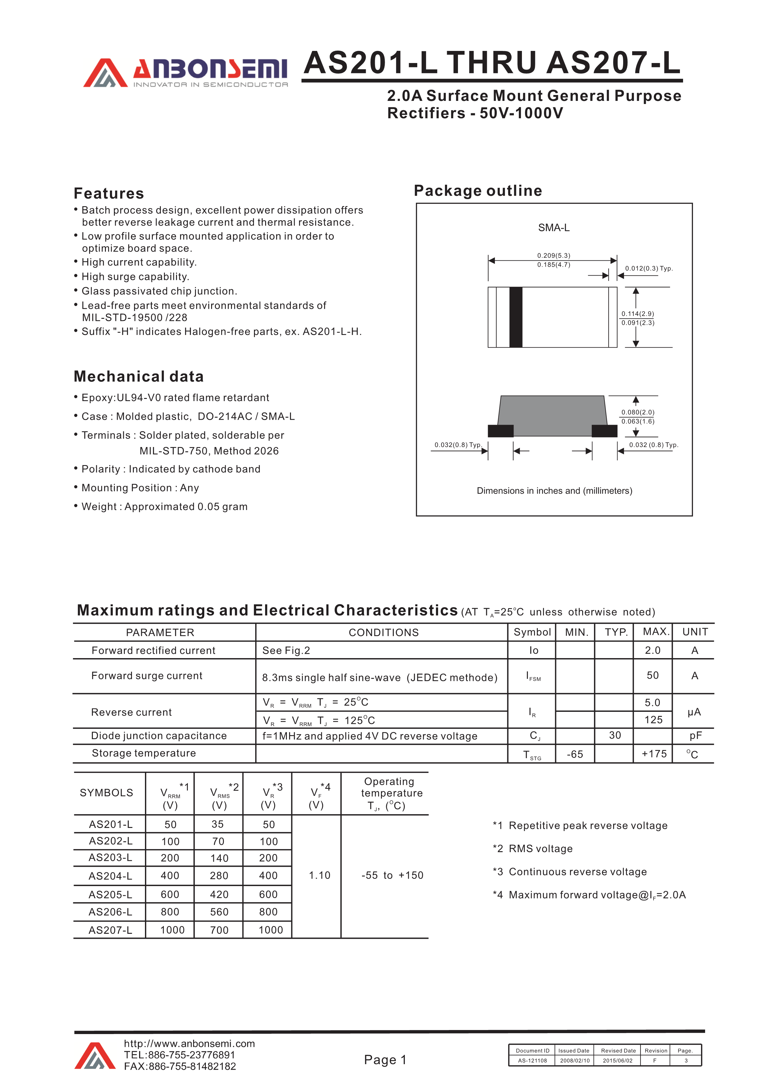 AS207-L数据手册SMA-L封装AnBon(台湾安邦)PDF规格书,中英文下载