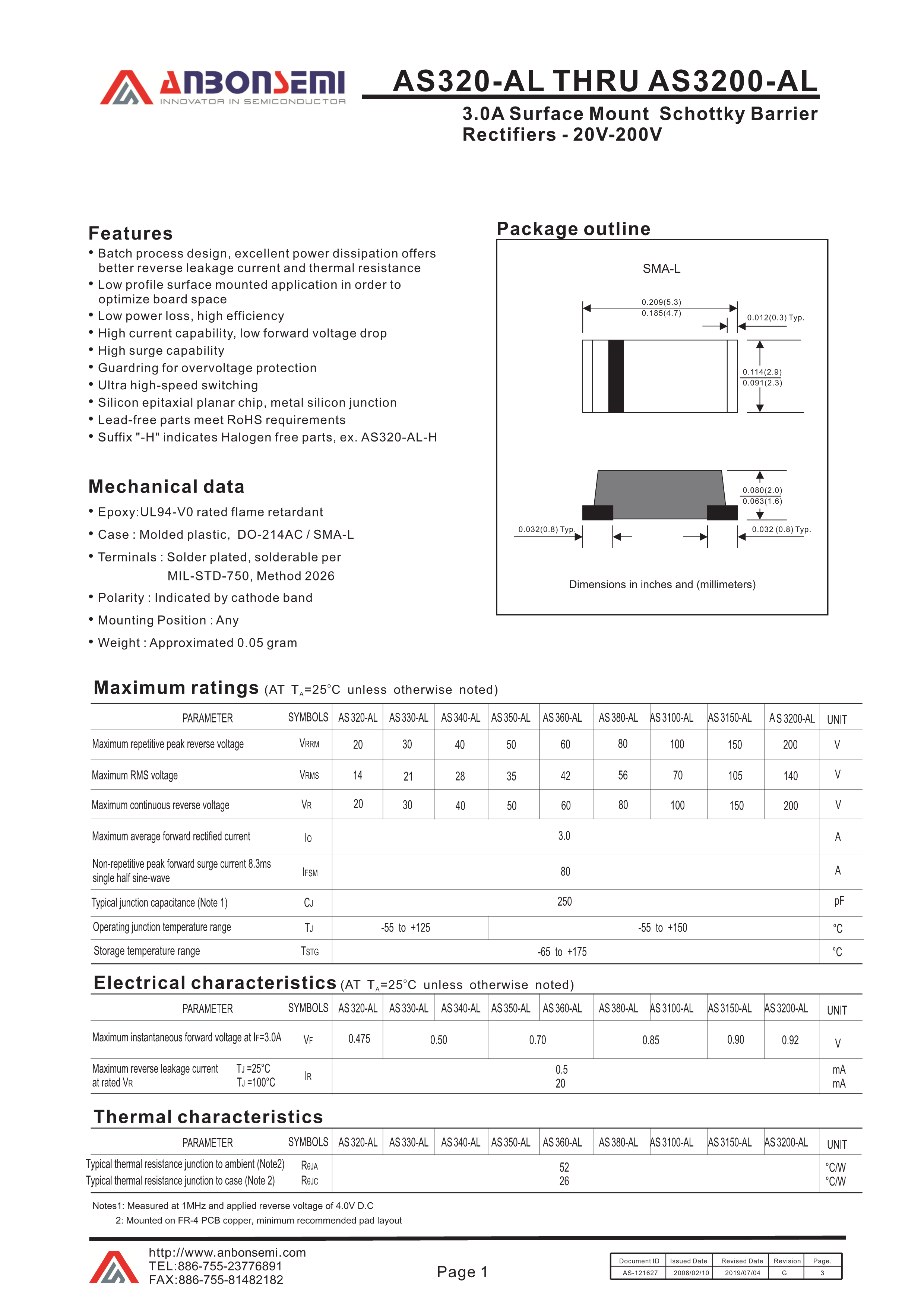 AS160-L数据手册SMA-L封装AnBon(台湾安邦)PDF规格书,中英文下载