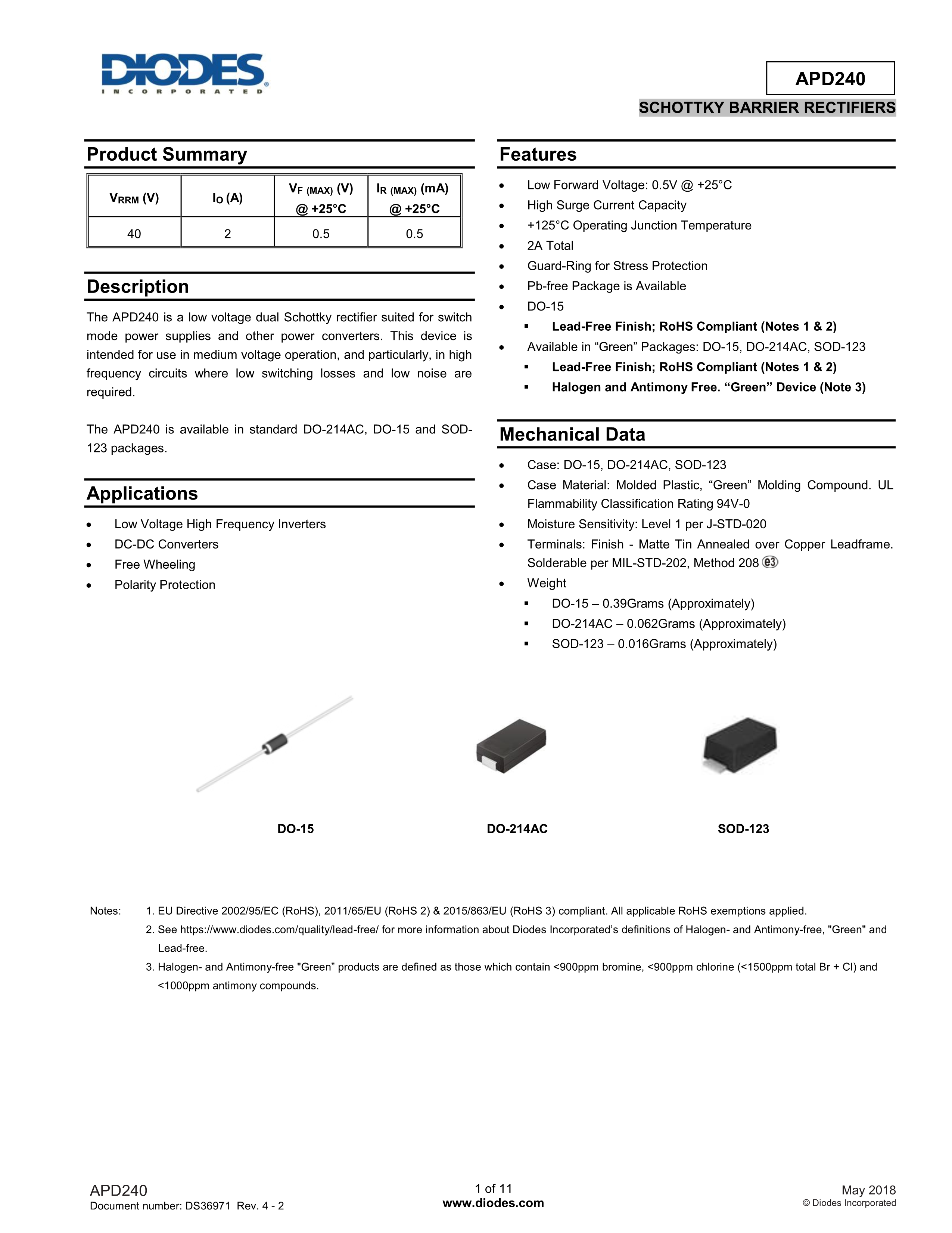 APD240KDTR-G1数据手册SOD-123封装DIODES(美台)PDF规格书,中英文下载