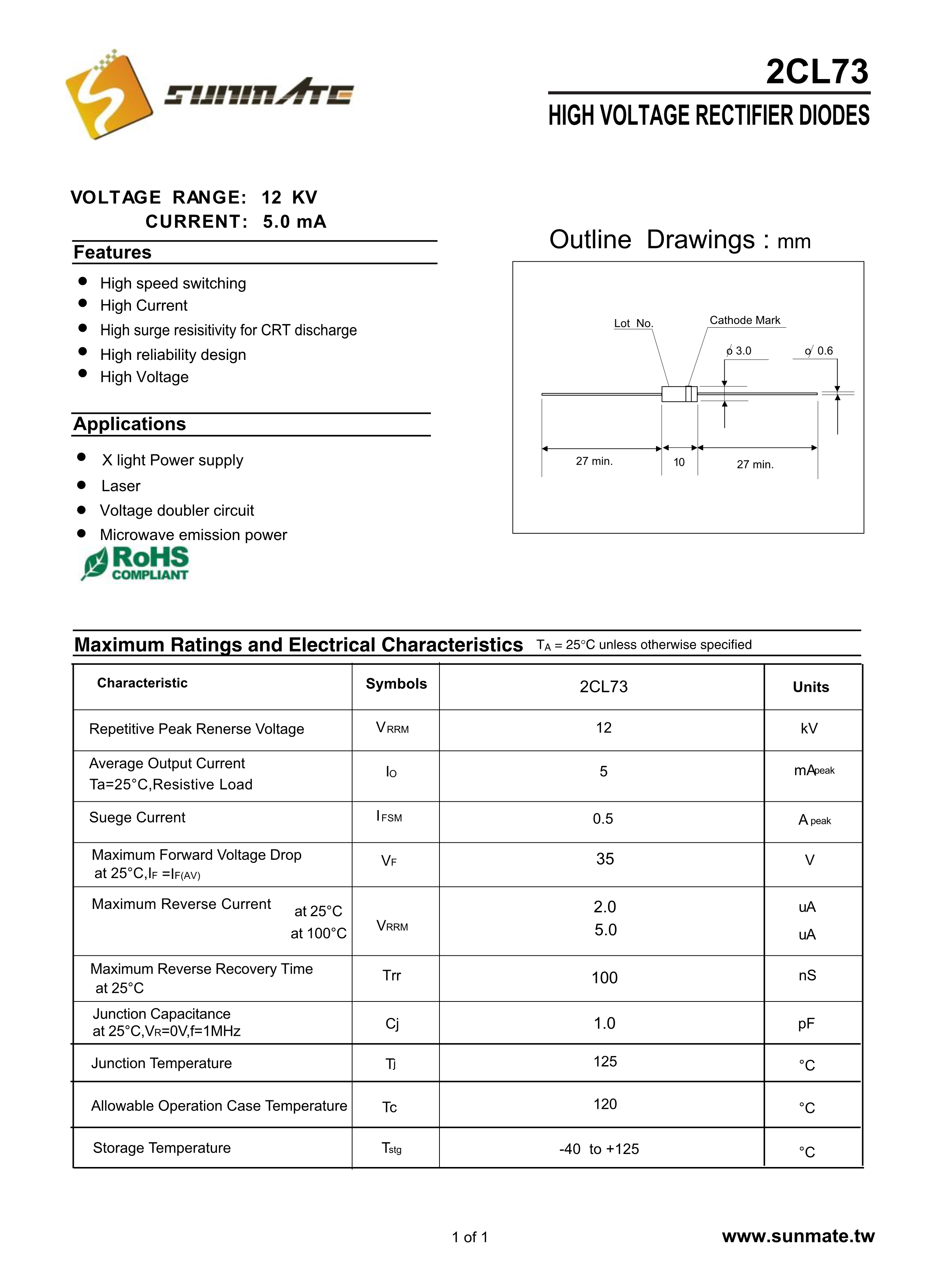 2CL73数据手册轴向引线封装SUNMATE(森美特)PDF规格书,中英文下载