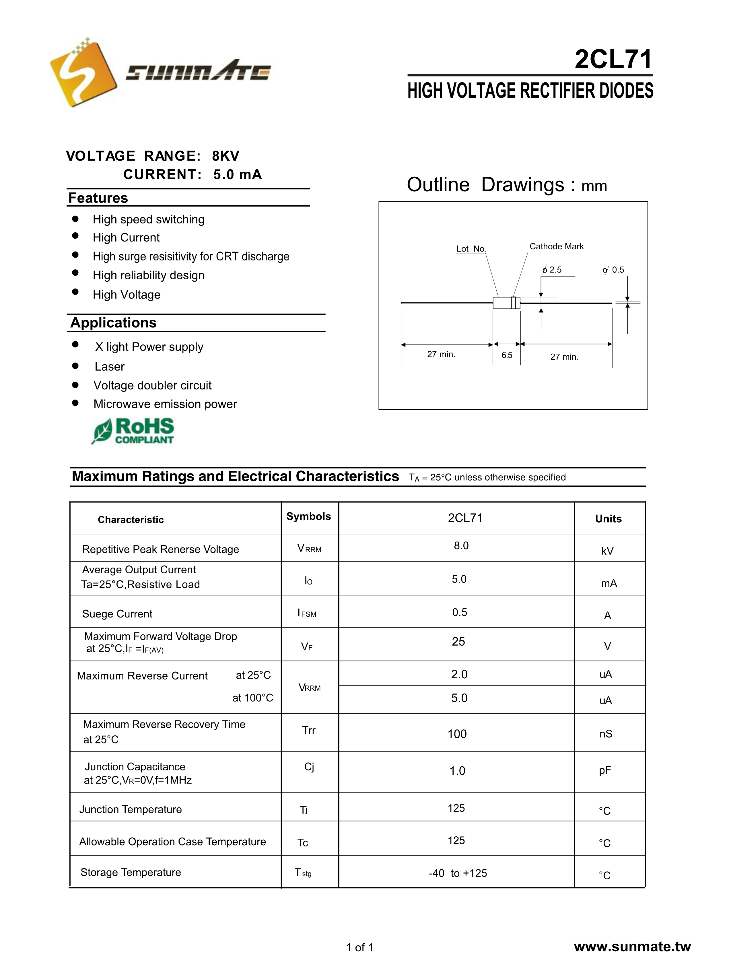 2CL71数据手册轴向引线封装SUNMATE(森美特)PDF规格书,中英文下载