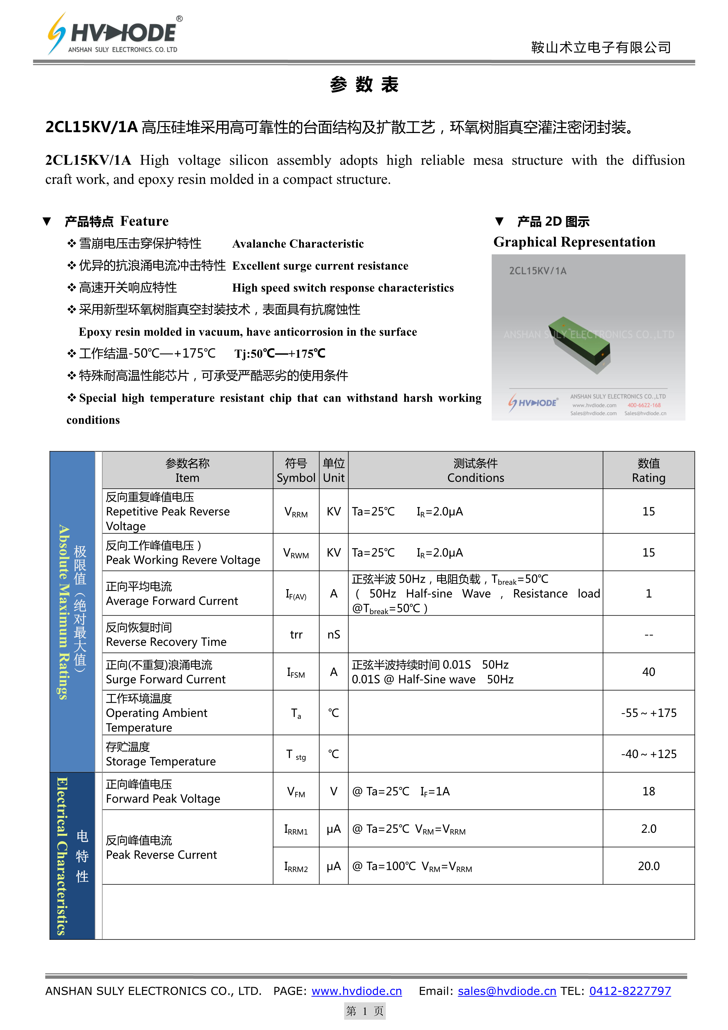2CL15KV-1A数据手册100x25x18mm封装HVDIODE(鞍山术立)PDF规格书,中英文