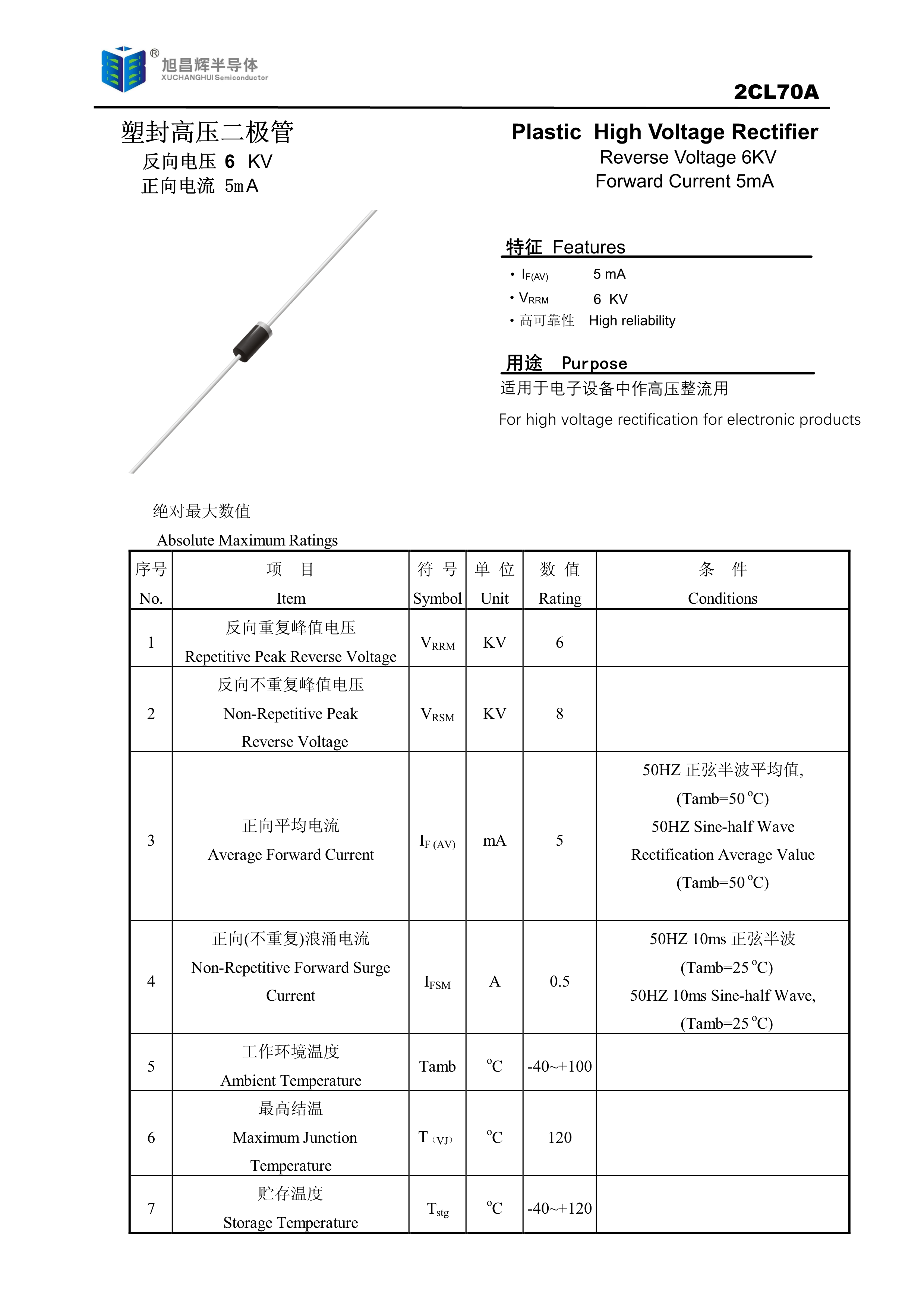2CL70A数据手册轴线引线封装XCH(旭昌辉)PDF规格书,中英文下载