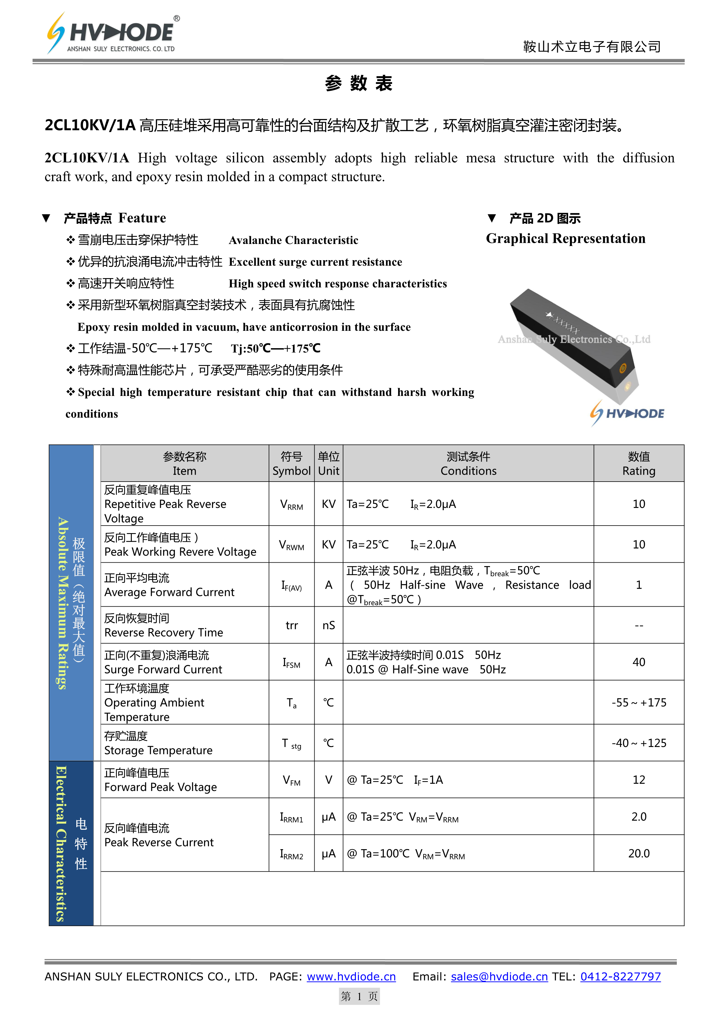 2CL10KV-1A数据手册90x25x20mm封装HVDIODE(鞍山术立)PDF规格书,中英文下