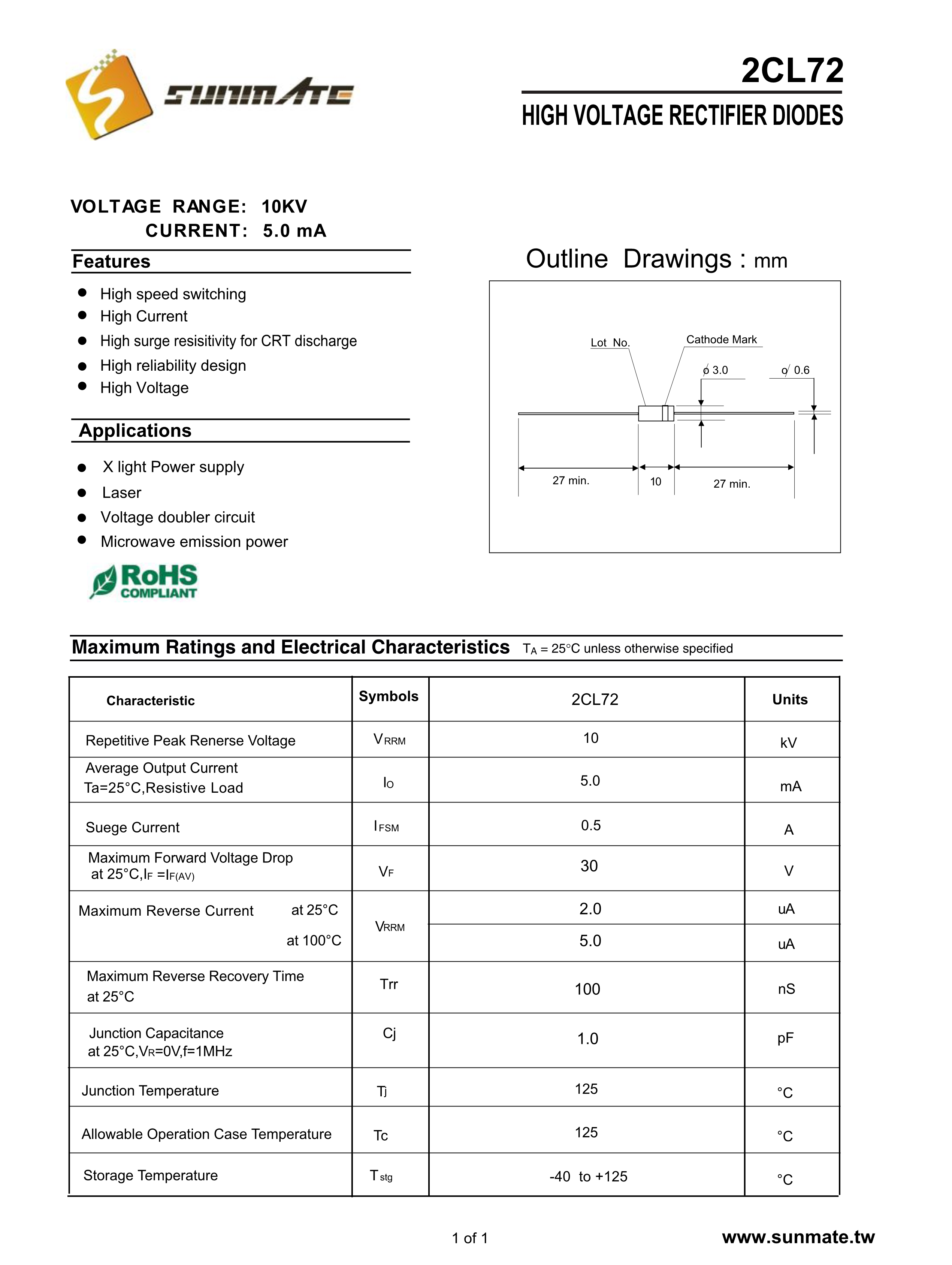 2CL72数据手册轴向引线封装SUNMATE(森美特)PDF规格书,中英文下载