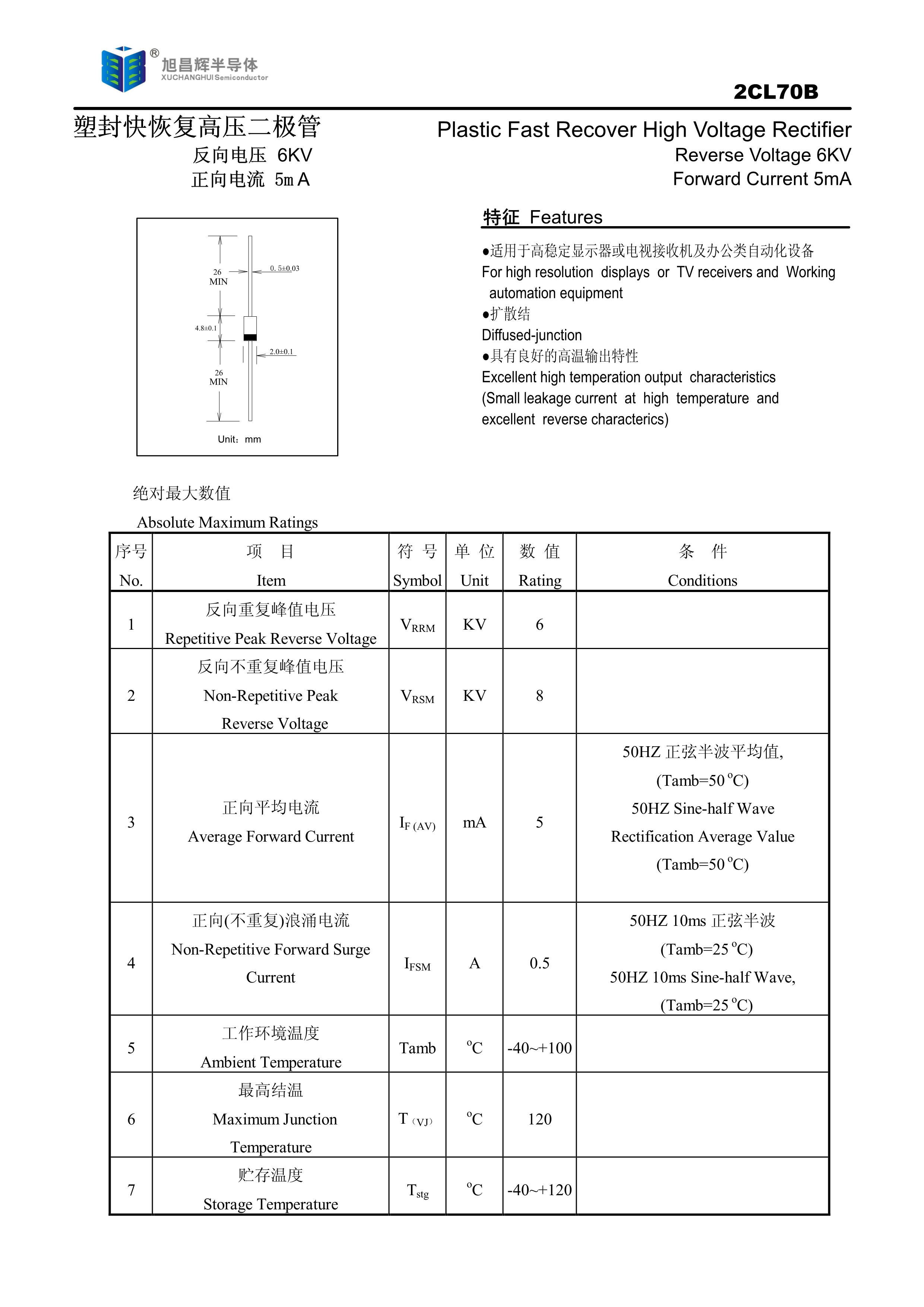 2CL70B数据手册轴线引线封装XCH(旭昌辉)PDF规格书,中英文下载