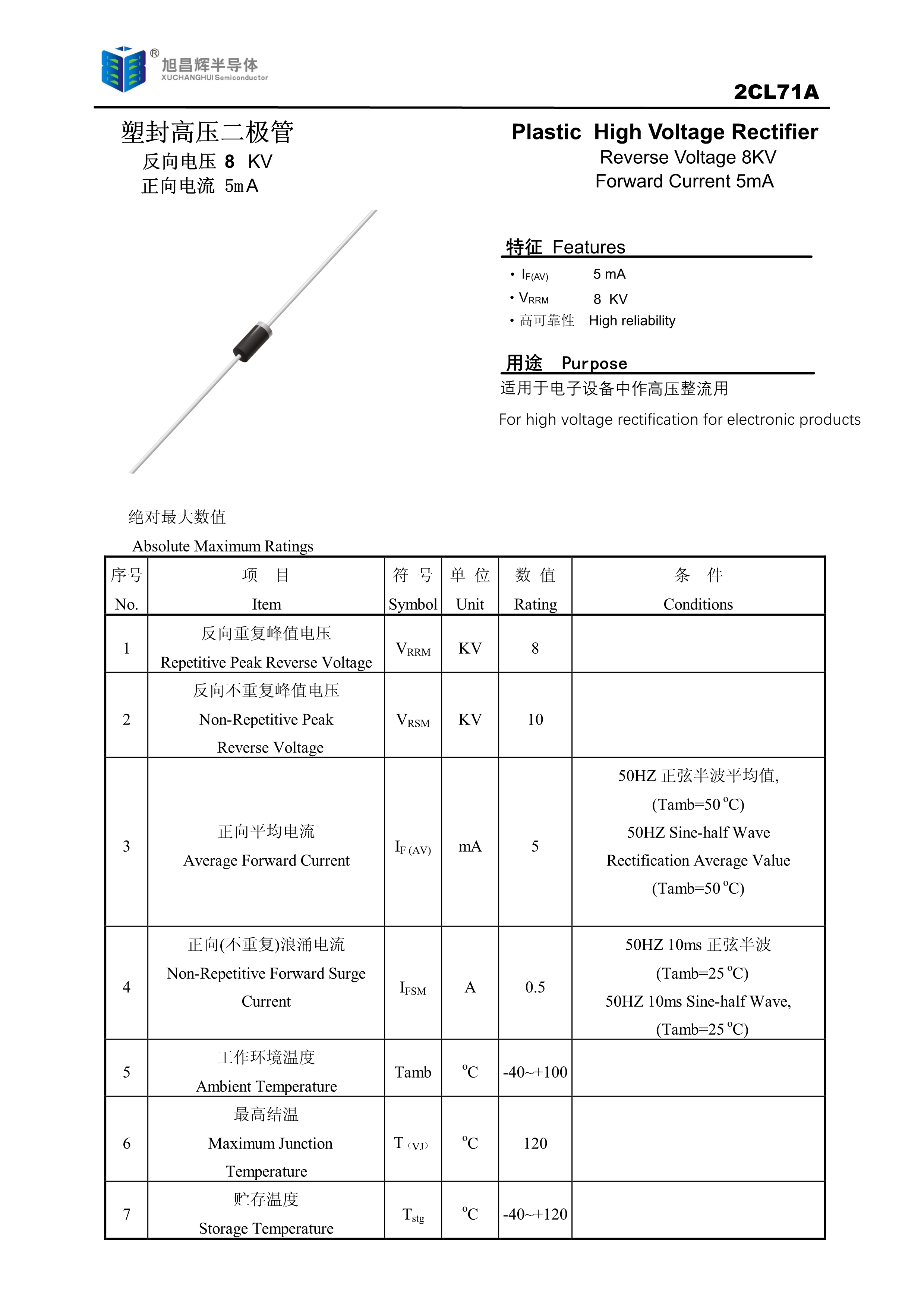 2CL71A数据手册轴线引线封装XCH(旭昌辉)PDF规格书,中英文下载