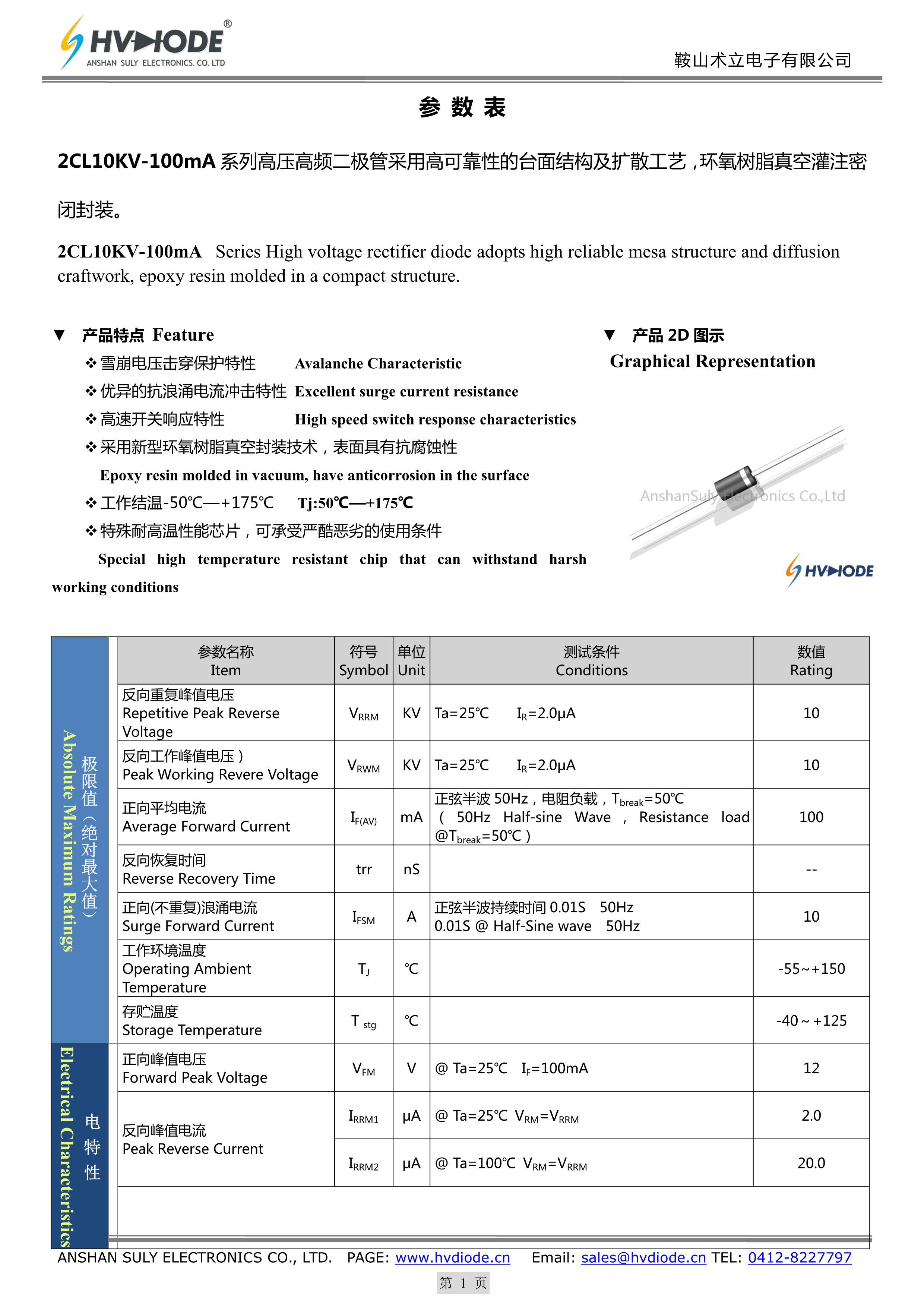 2CL10KV-100mA数据手册DO-509封装HVDIODE(鞍山术立)PDF规格书,中英文下载