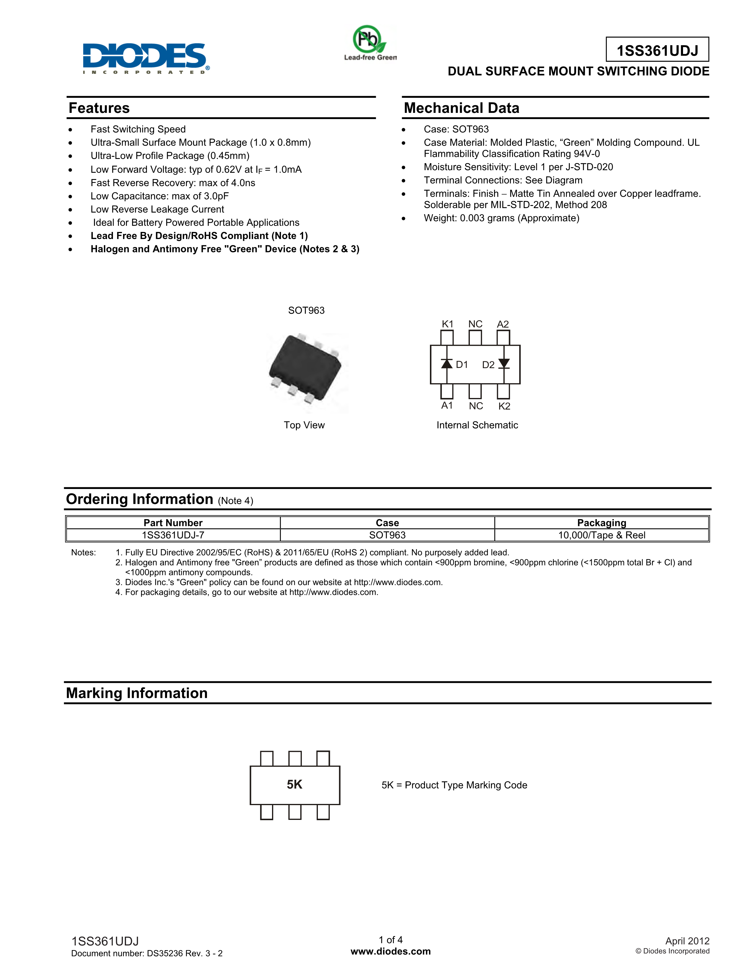 1SS361UDJ-7数据手册SOT-963封装DIODES(美台)PDF规格书,中英文下载