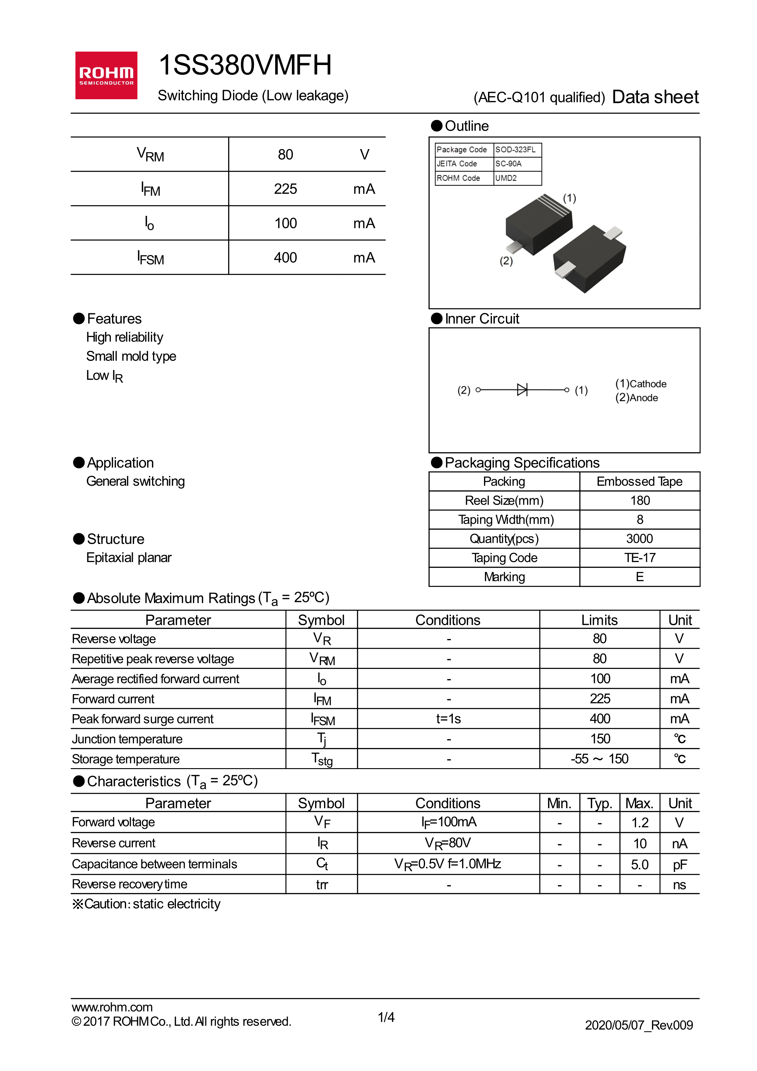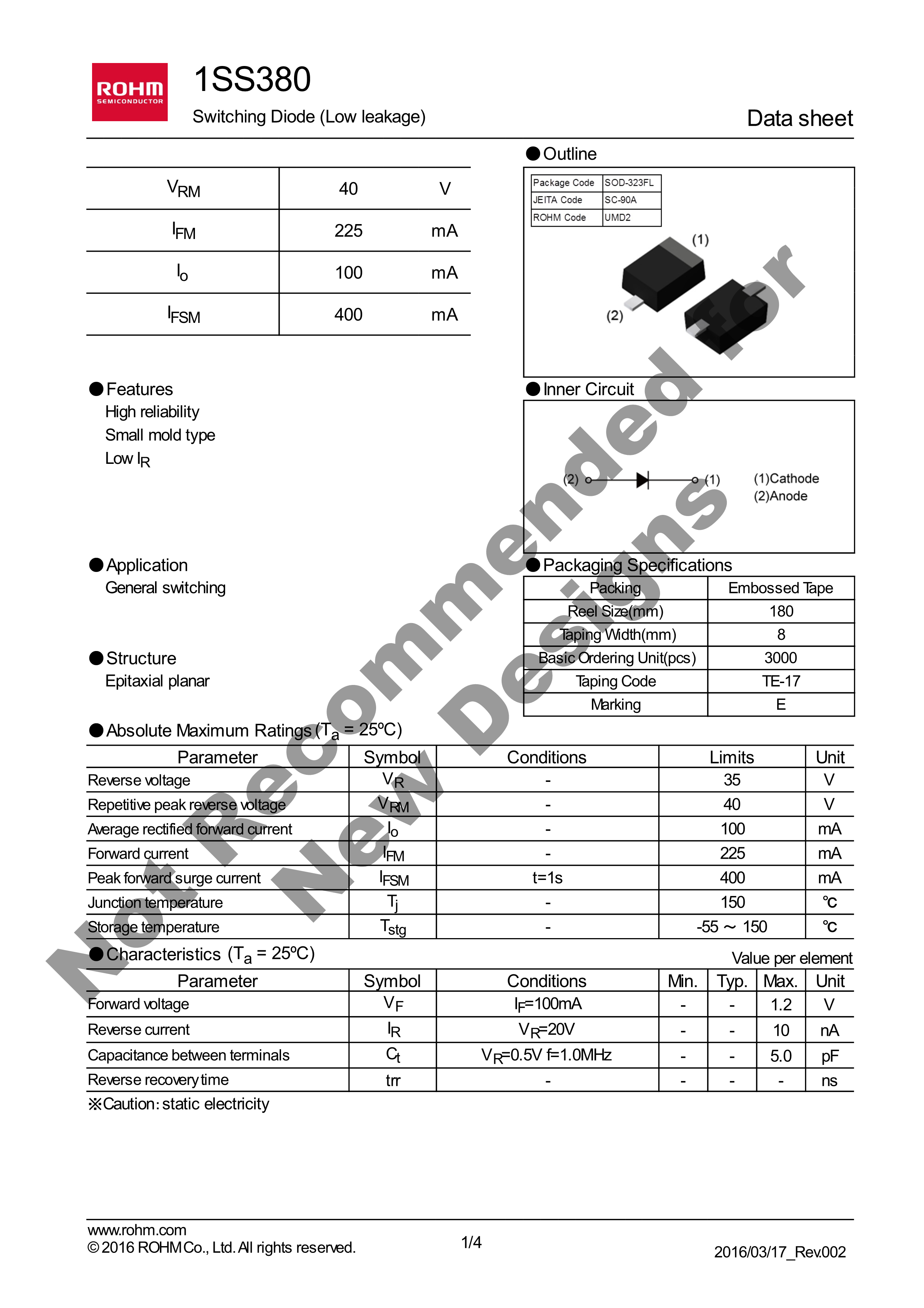 1SS380TE-17数据手册SC-90A封装ROHM(罗姆)PDF规格书,中英文下载