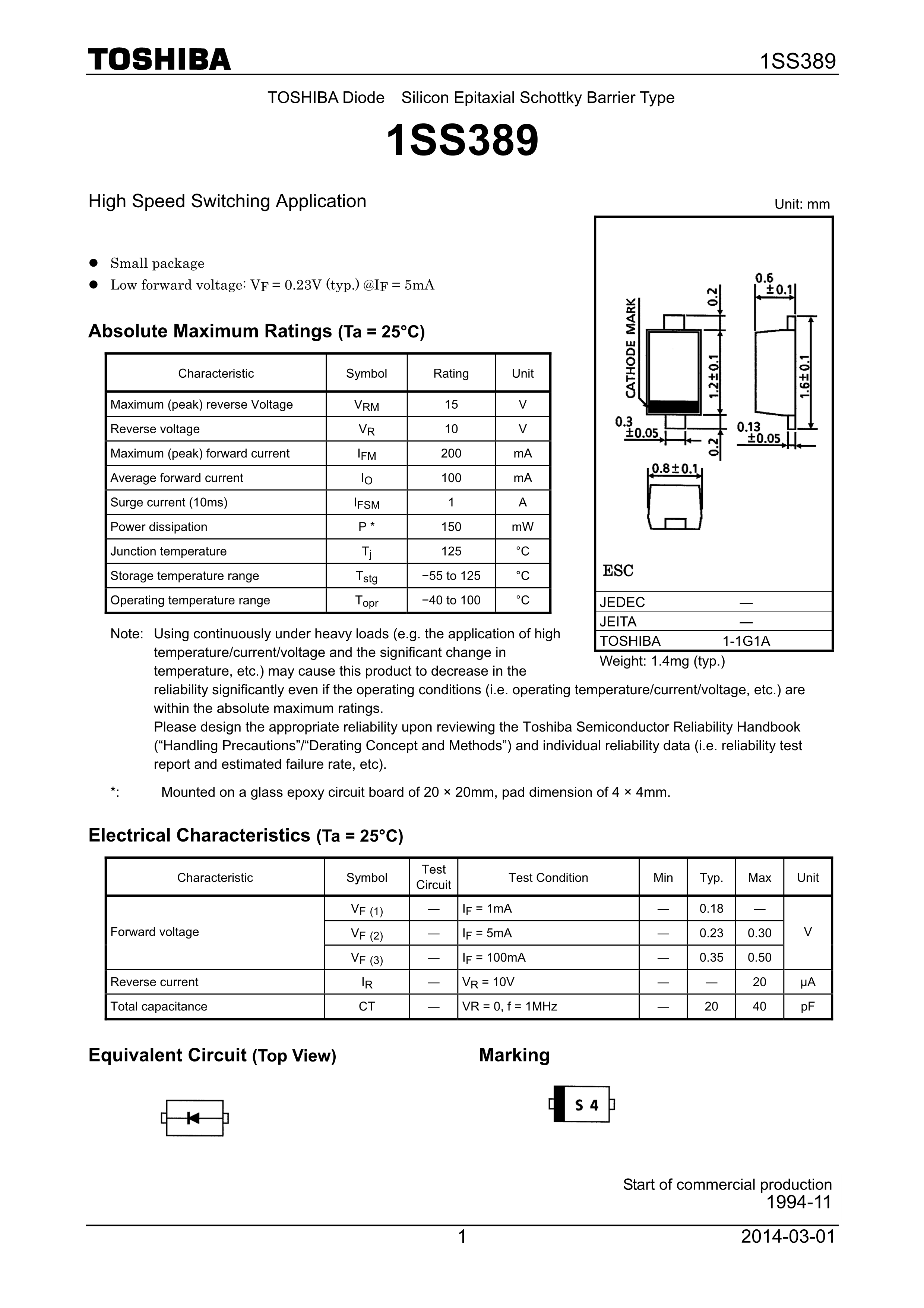 1SS379(TE85LF)数据手册-封装TOSHIBA(东芝)PDF规格书,中英文下载