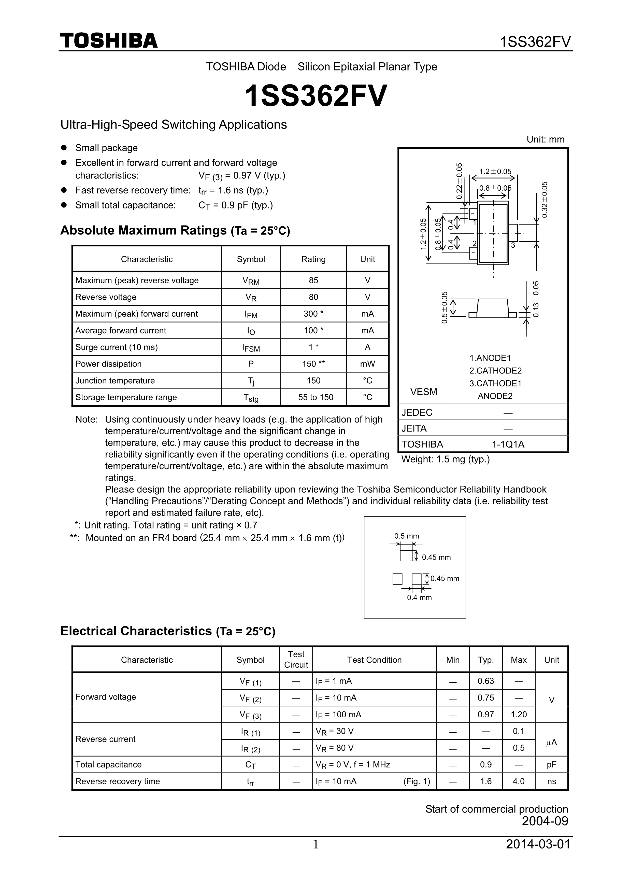 1SS362(TE85LF)数据手册SC-75封装TOSHIBA(东芝)PDF规格书,中英文下载