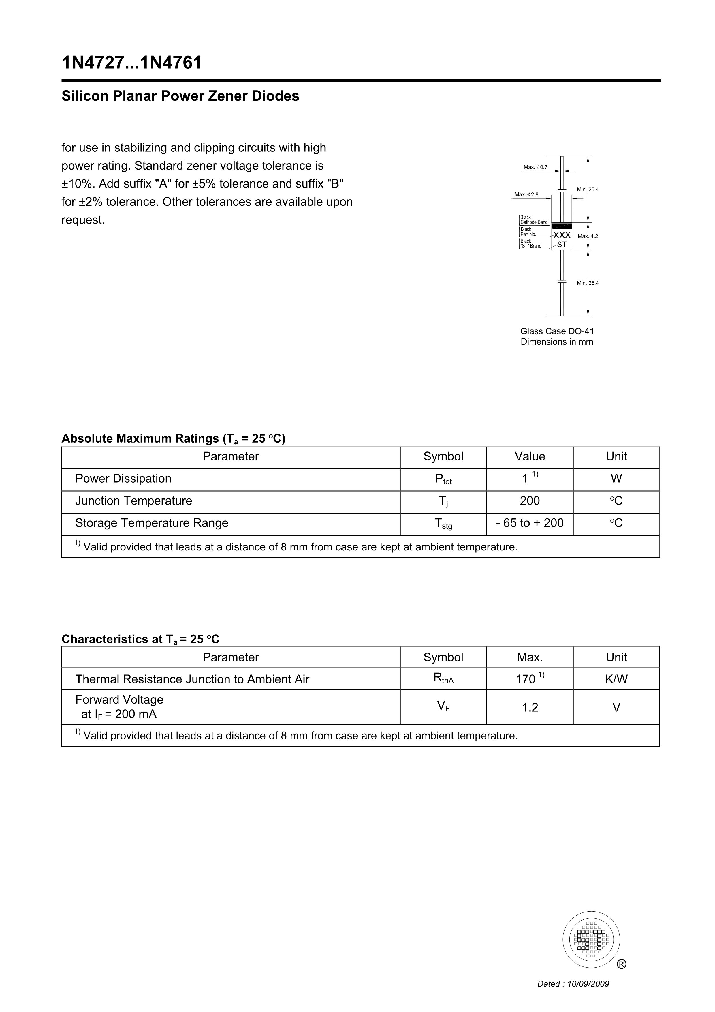 1N4727A数据手册DO-41封装ST(先科)PDF规格书,中英文下载