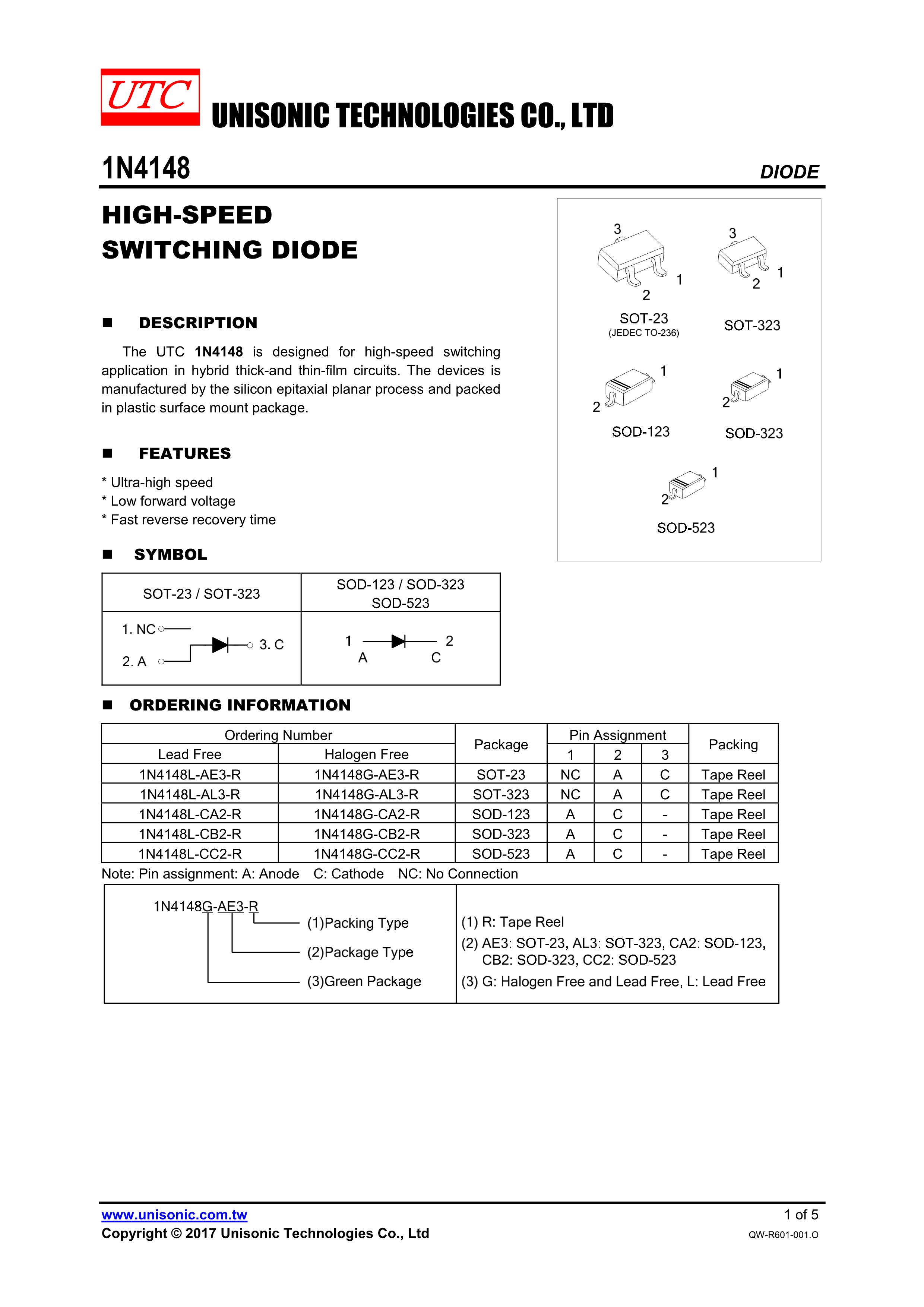1N4148G-CB2-R数据手册SOD-323封装UTC(友顺)PDF规格书,中英文下载