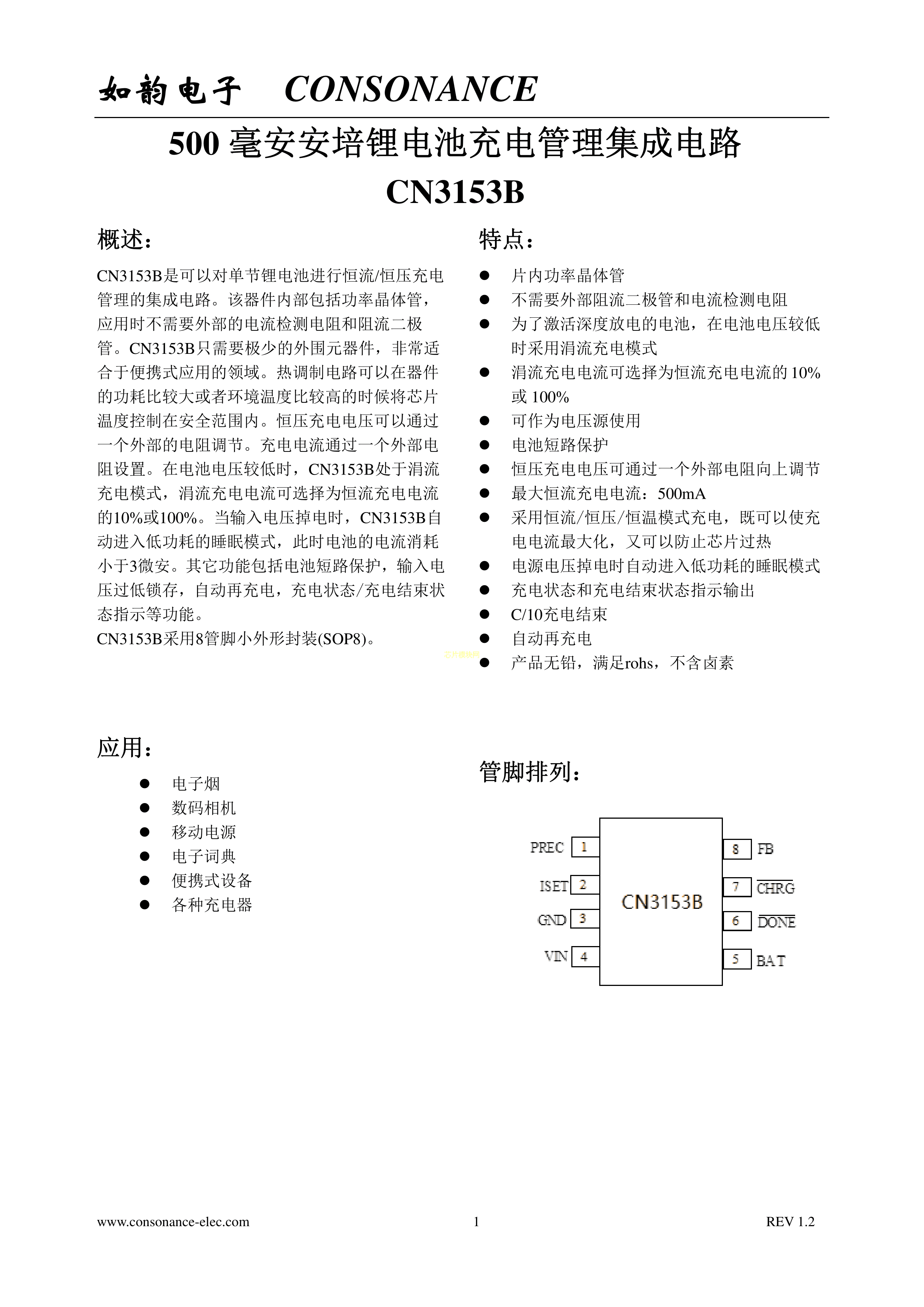 锂电池充电芯片CN3153BPDF规格书,中英文下载