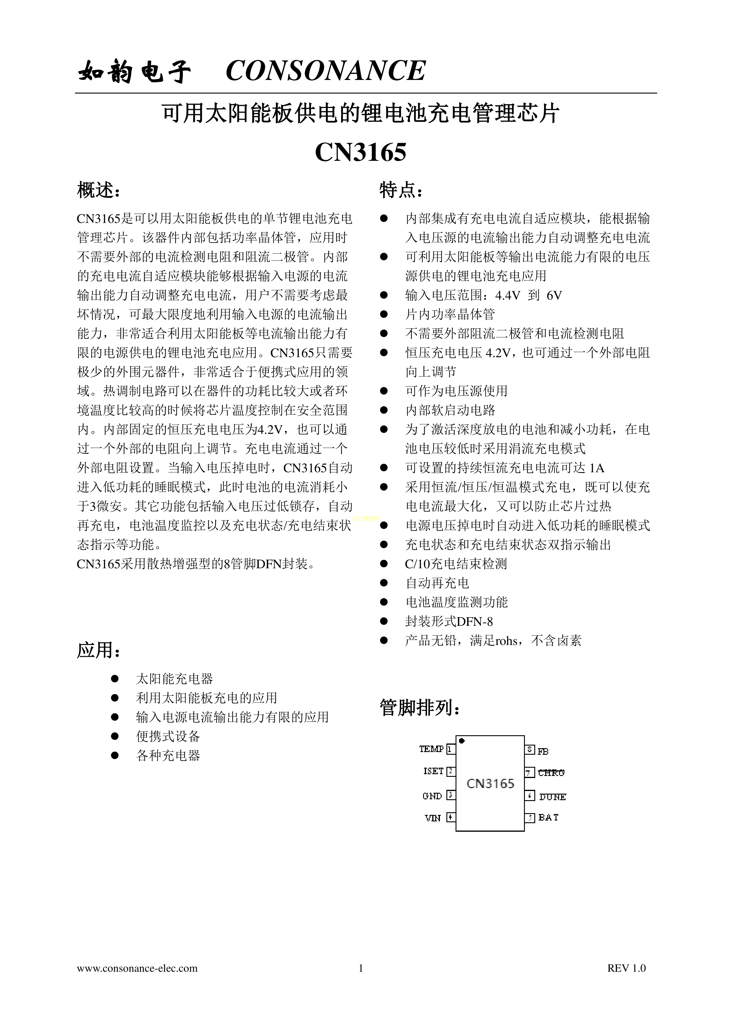锂电池充电芯片CN3165PDF规格书,中英文下载