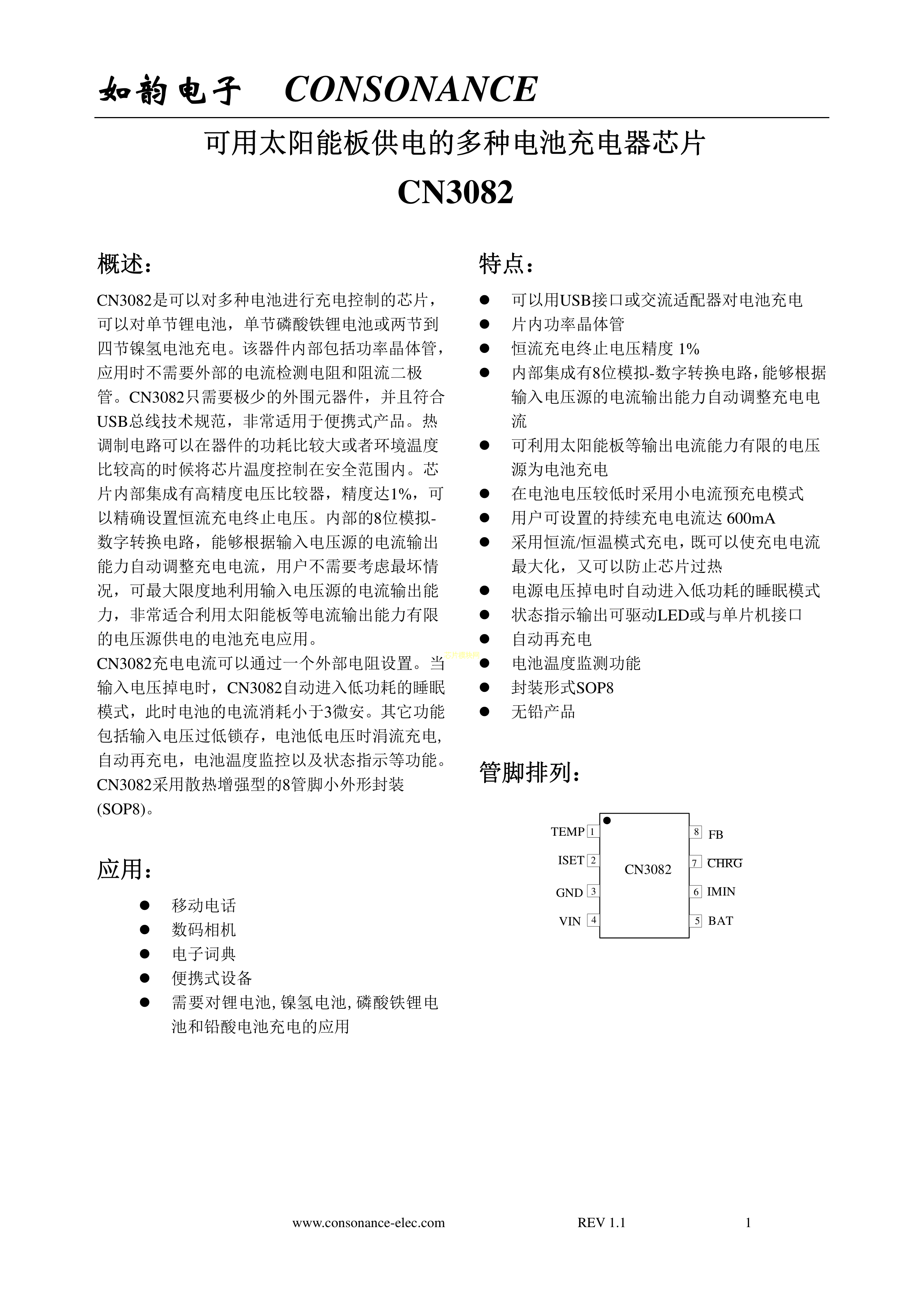 电池充电芯片CN3082PDF规格书,中英文下载