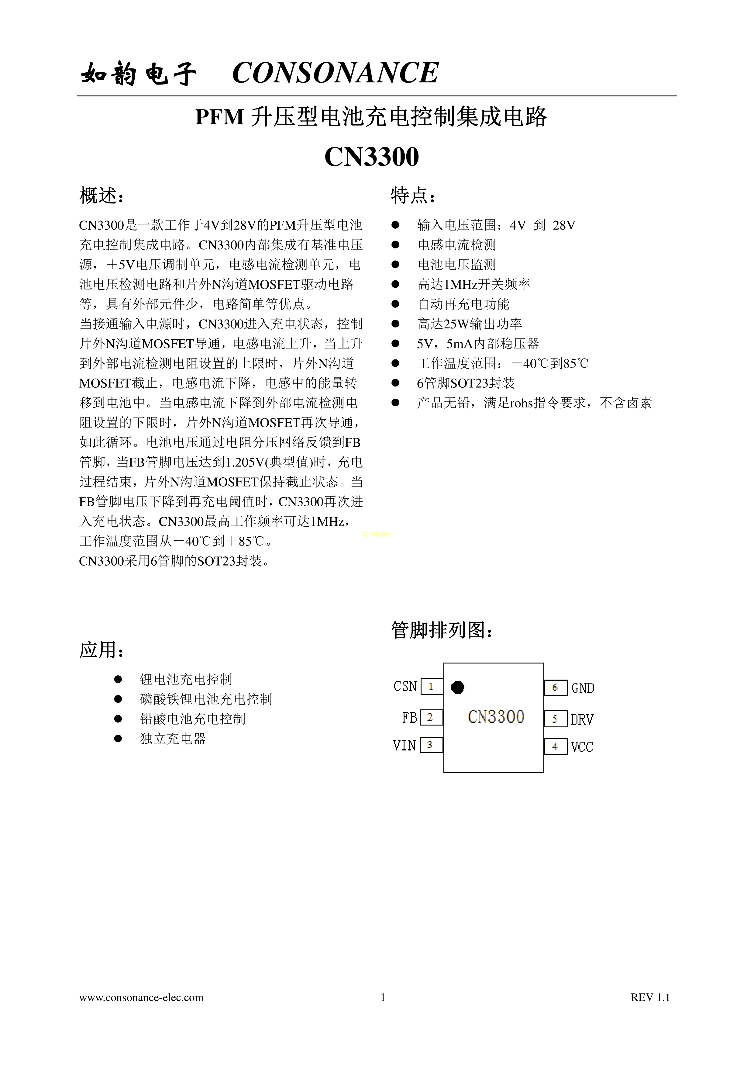 锂电池充电芯片CN3300PDF规格书,中英文下载