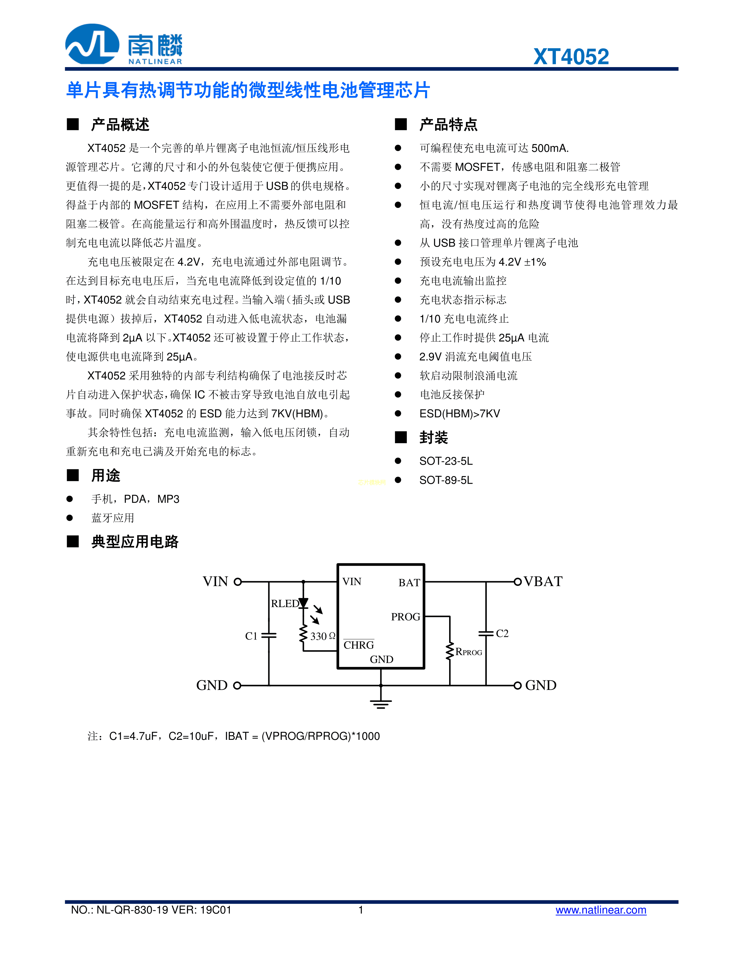 XT4052PDF规格书,中英文下载