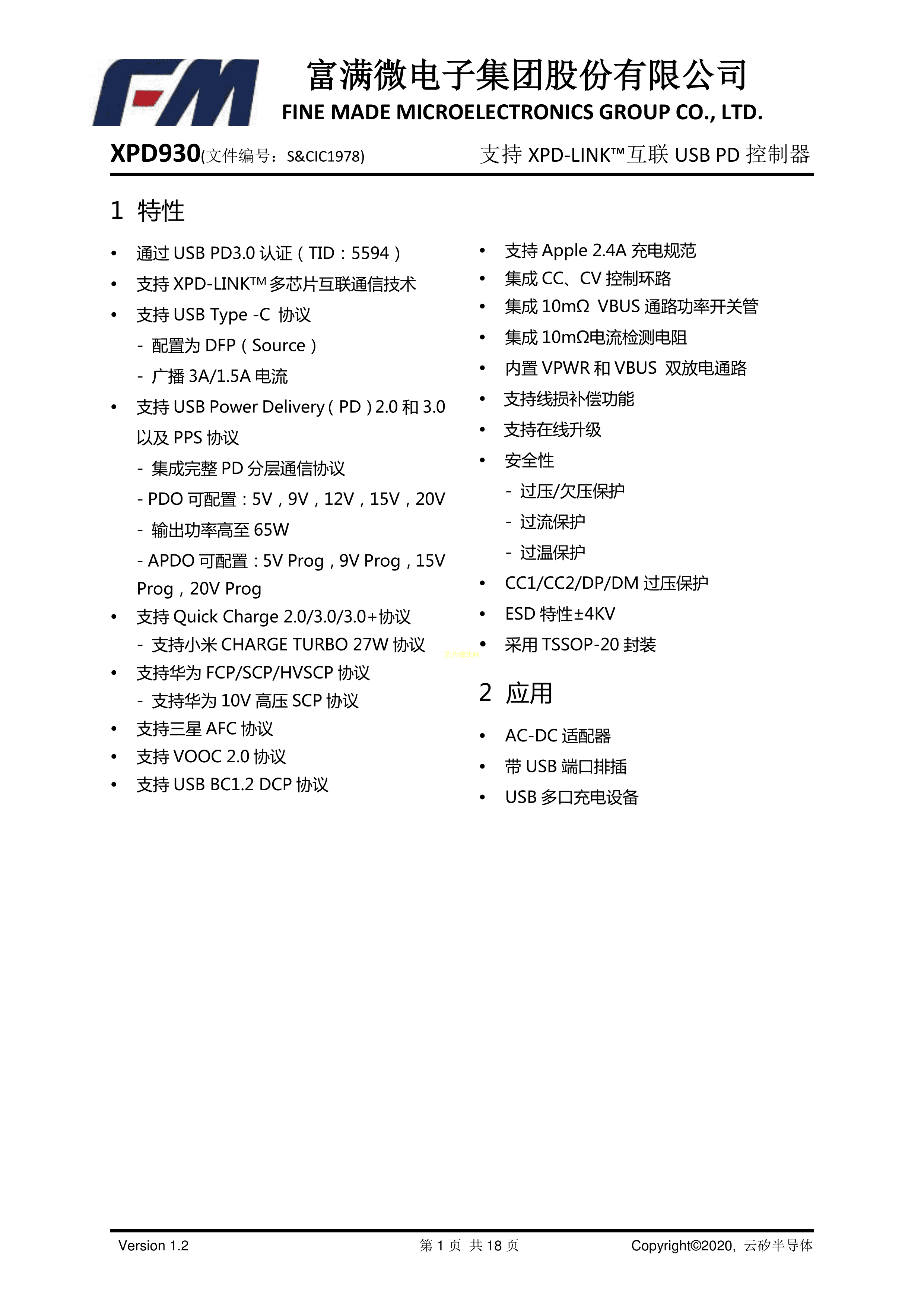 XPD930BAPDF规格书,中英文下载