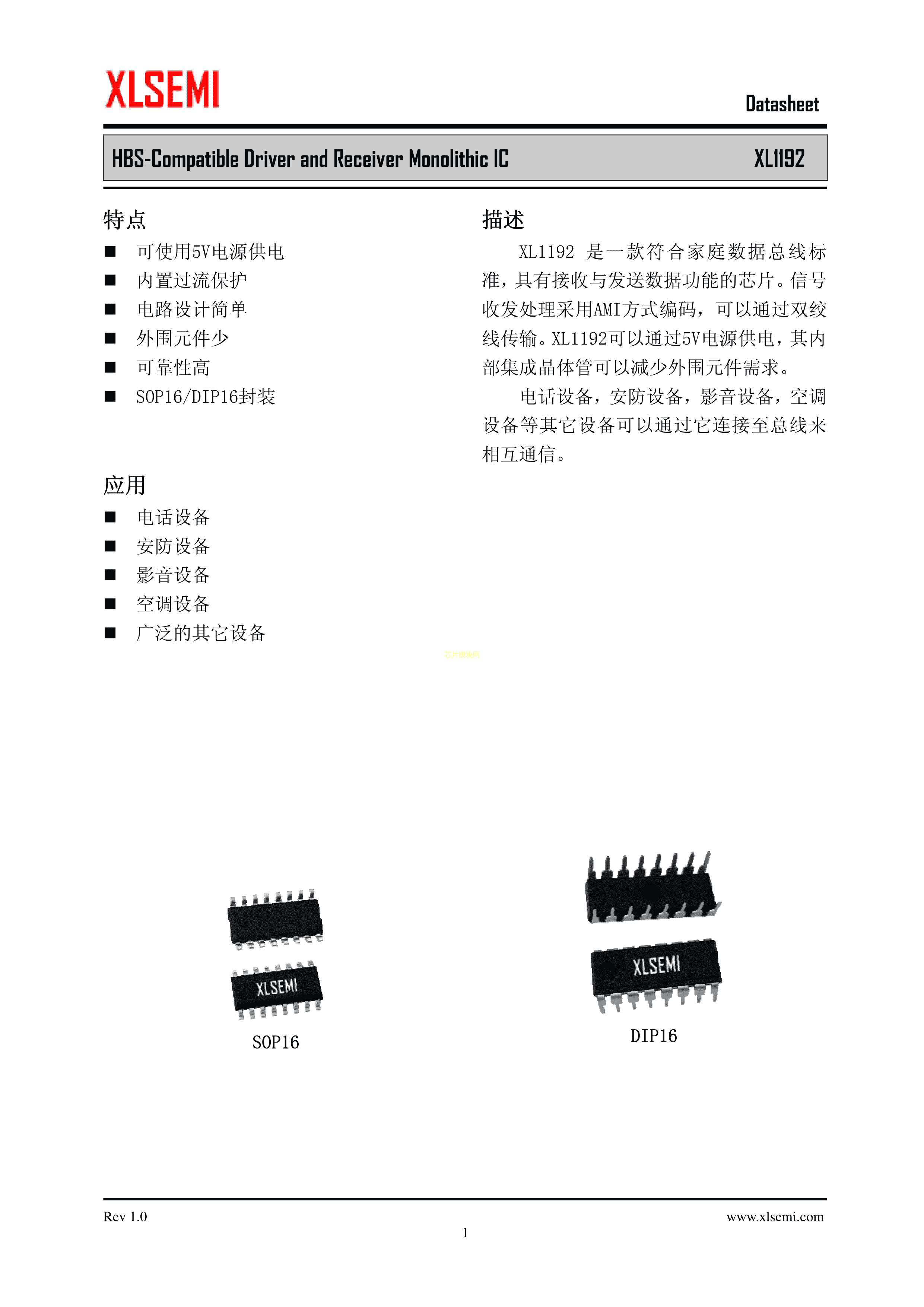 XL1192PDF规格书,中英文下载