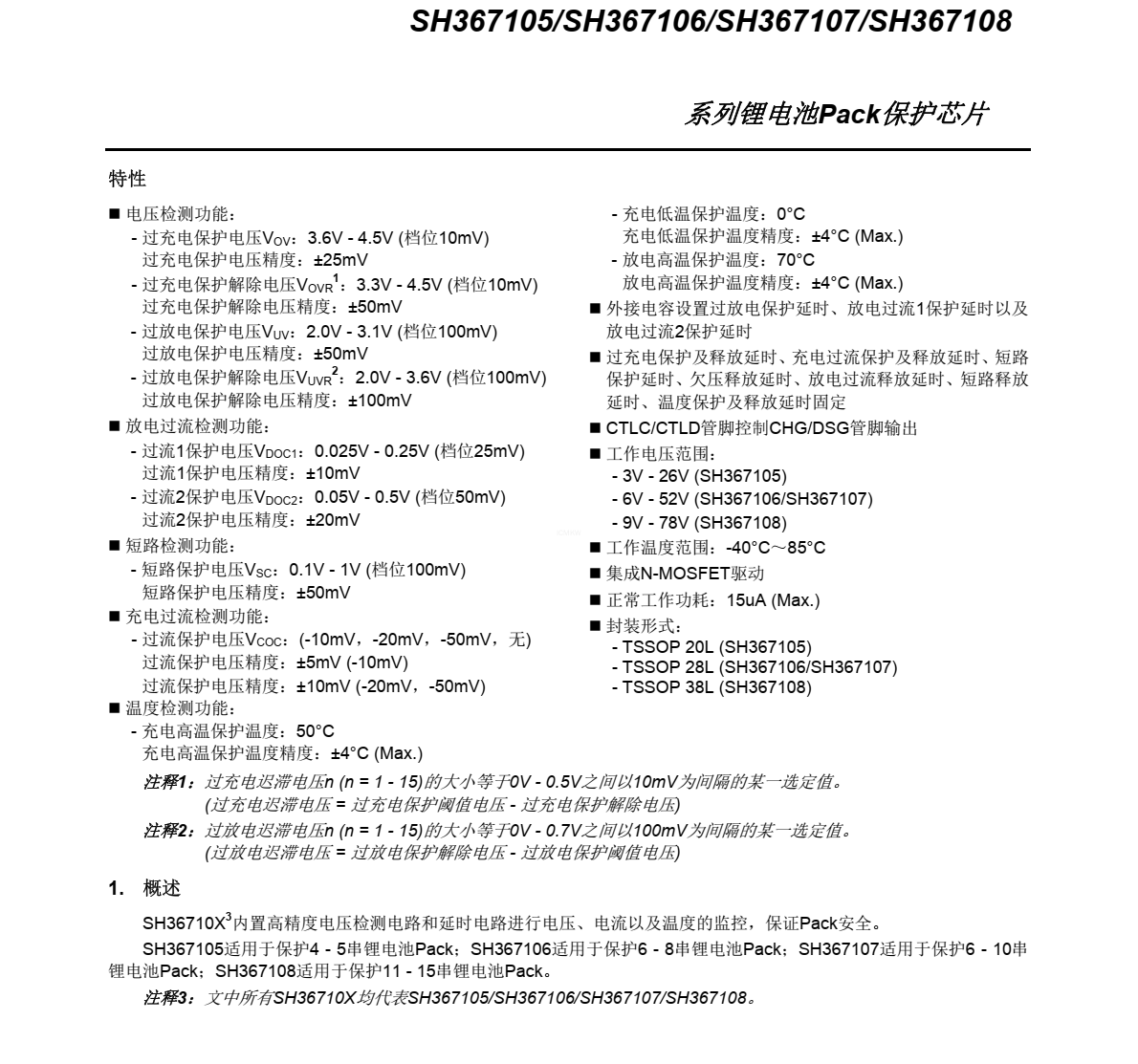 SH367106,锂电池Pack保护芯片PDF规格书下载
