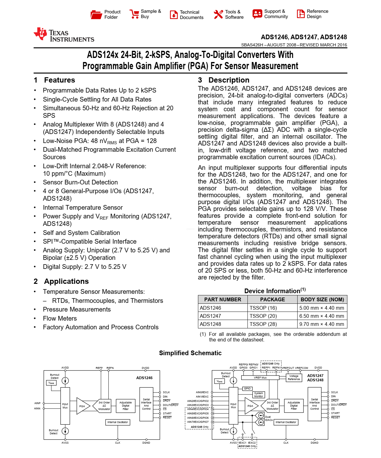 AD1246,模数转换器用于传感器测量的可编程增益放大器芯片PDF规格书下载