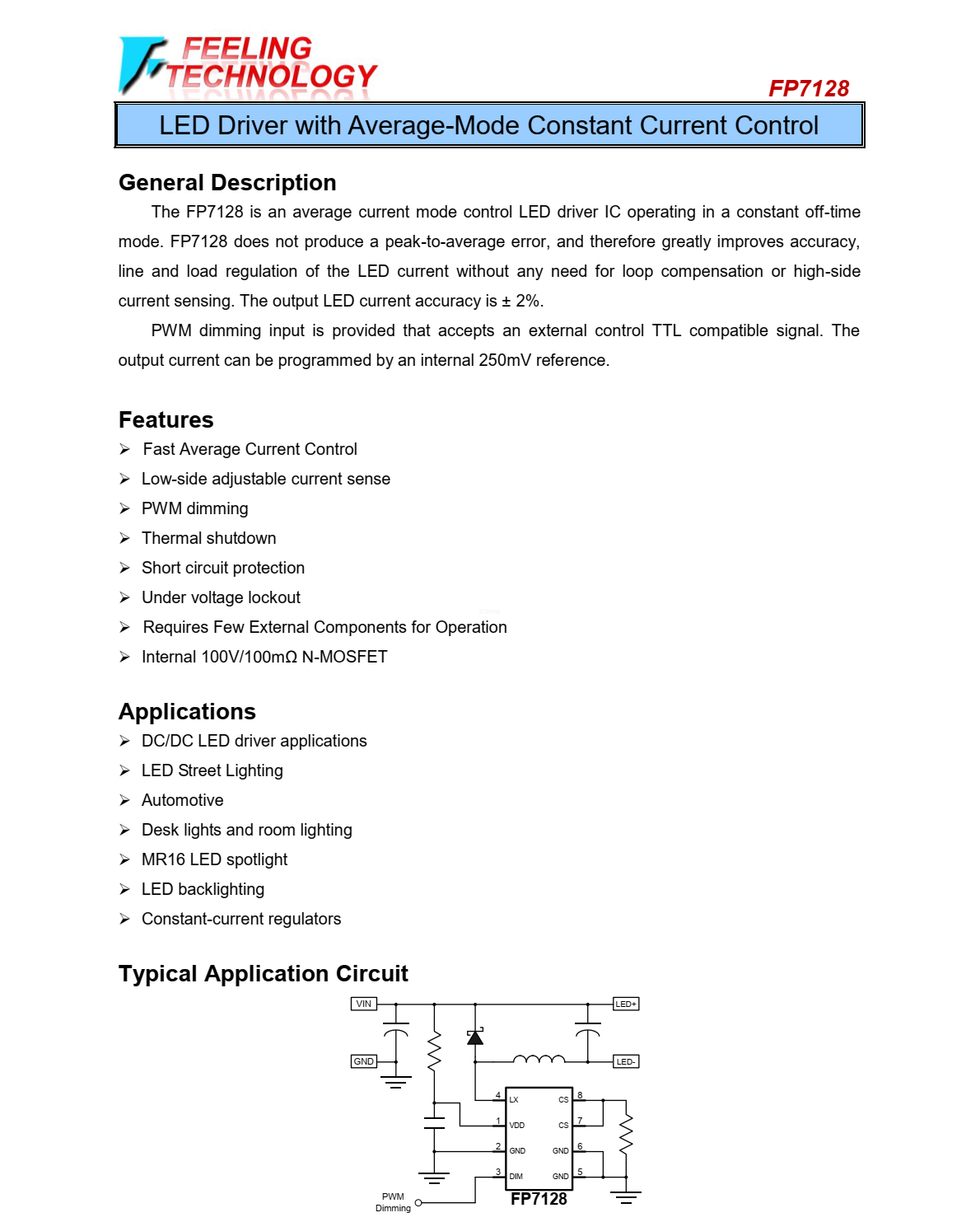 FP7128,具有平均模式恒定电流控制的LED驱动器芯片PDF规格书下载