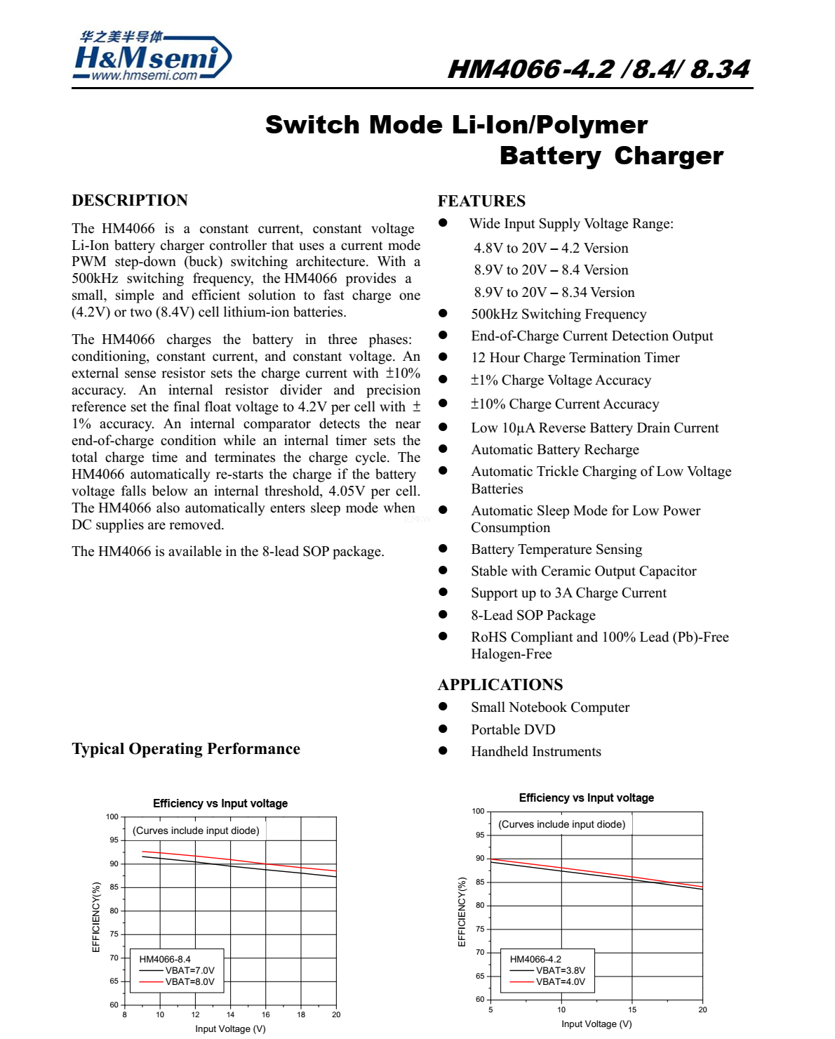 HM4066,开关模式锂离子/聚合物电池充电器芯片PDF规格书下载