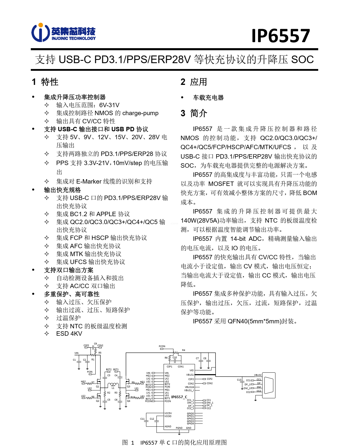 IP6557,支持 USB-C PD3.1/PPS/ERP28V 等快充协议的升降压芯片PDF规格书下载