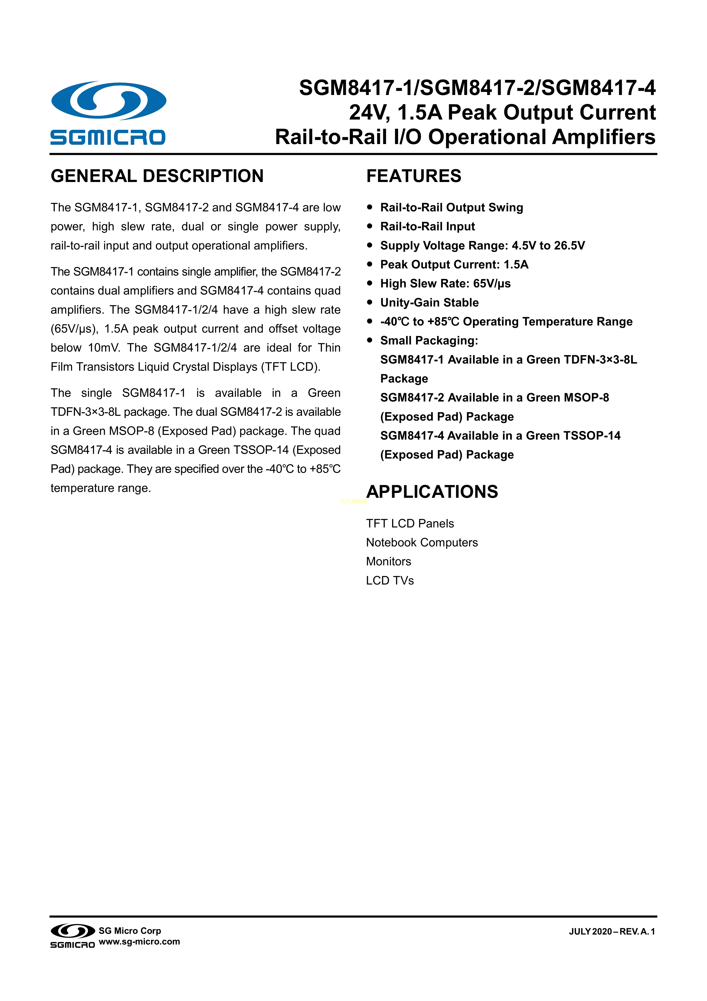 SGM8417-1PDF规格书,中英文下载