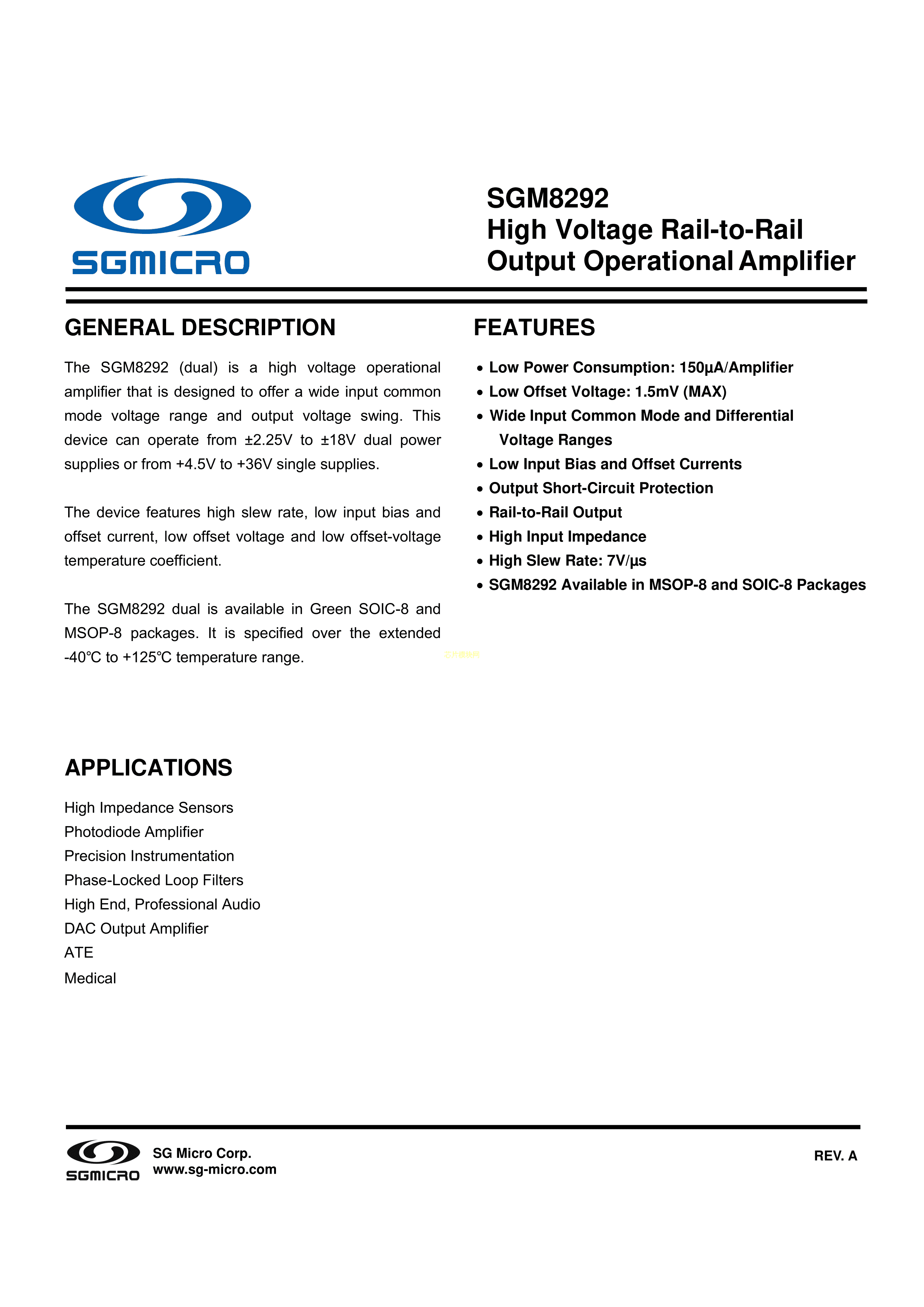 SGM8292PDF规格书,中英文下载