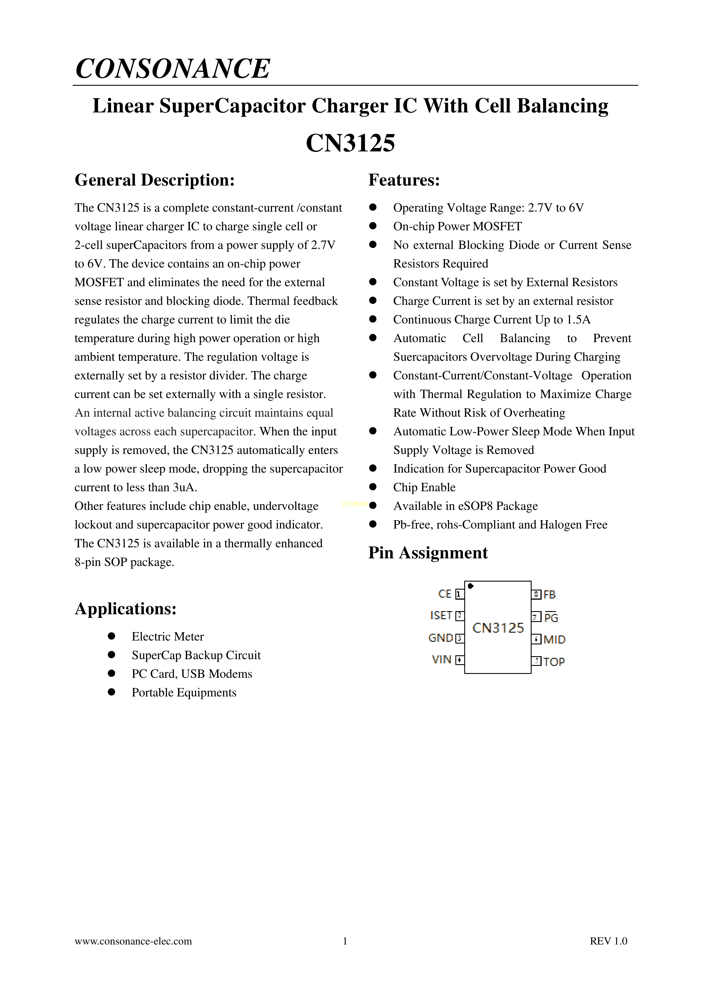 超级电容充电芯片CN3125PDF规格书,中英文下载