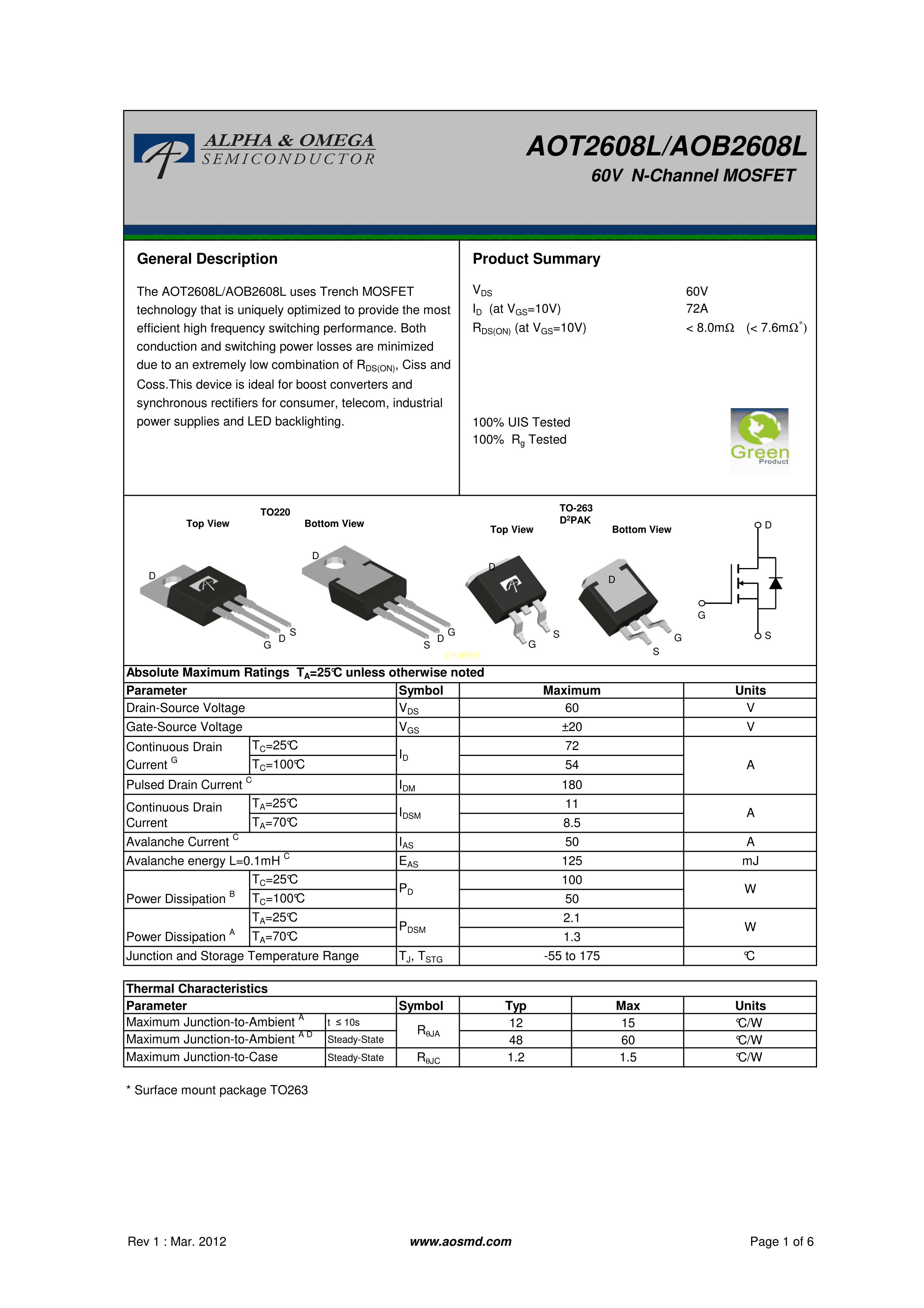 AOT2608LPDF规格书,中英文下载