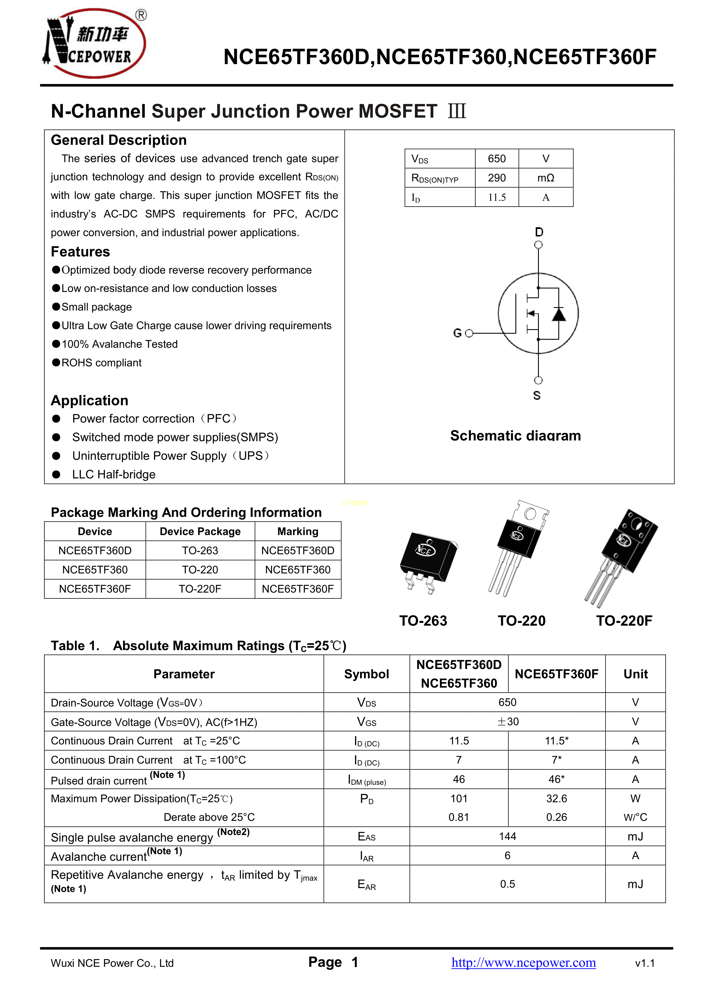 NCE65TF360DPDF规格书,中英文下载