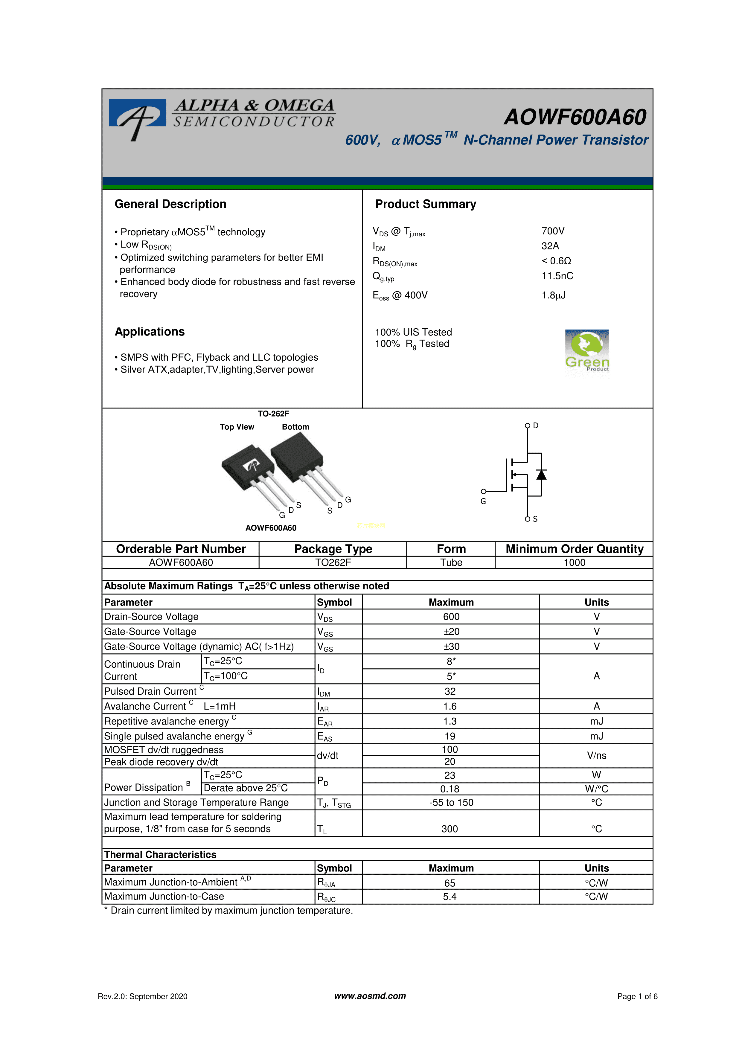 AOWF600A60PDF规格书,中英文下载