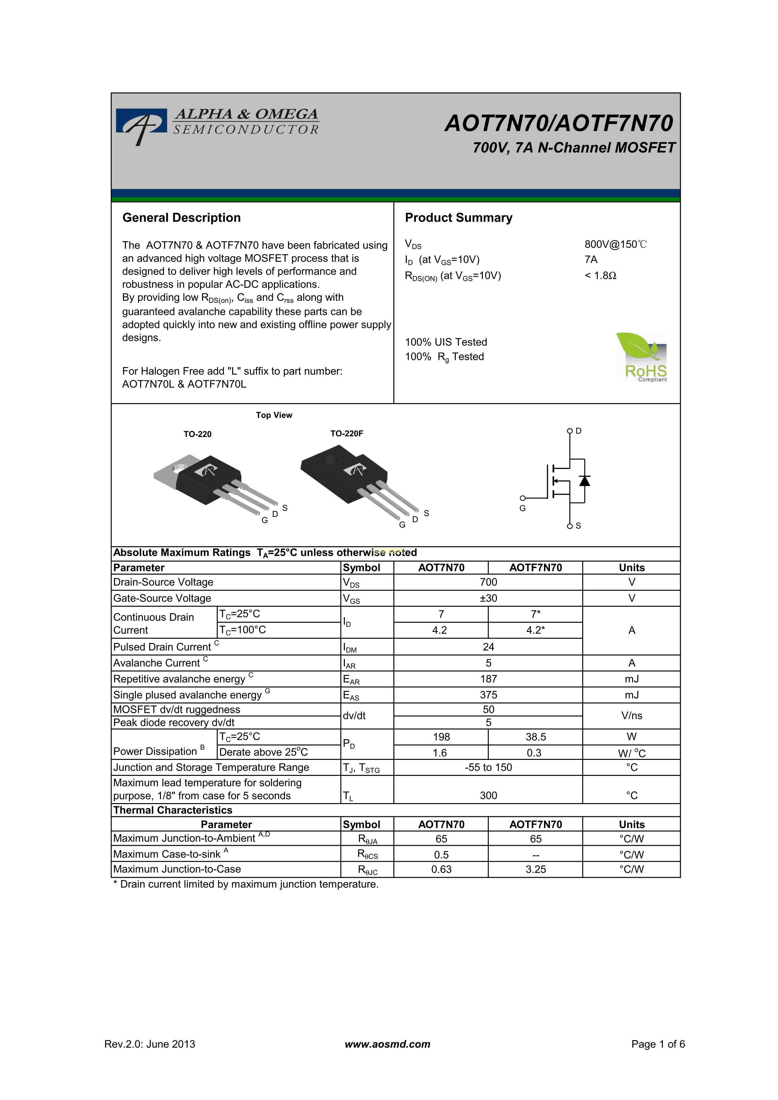 AOTF7N70PDF规格书,中英文下载