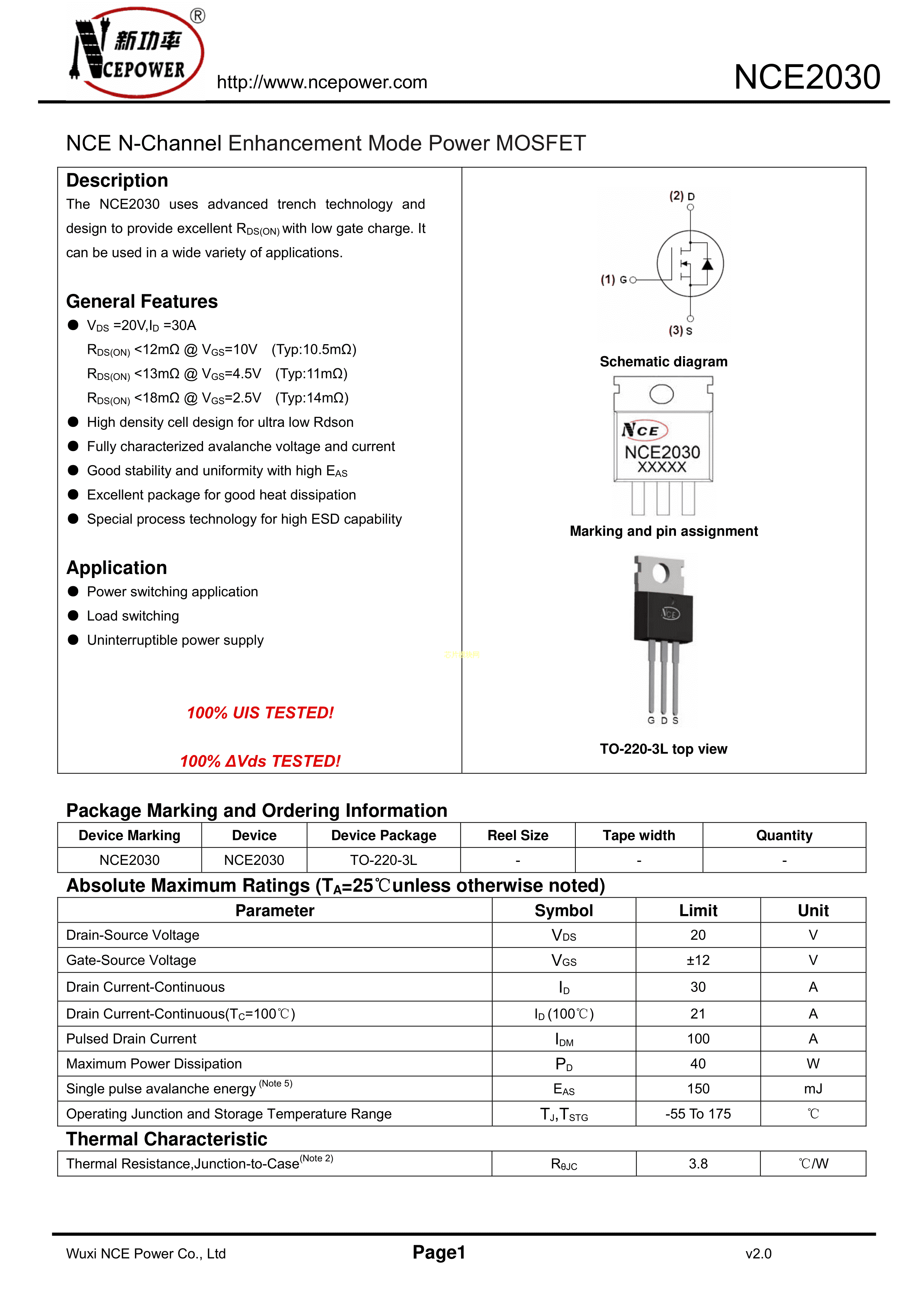 NCE2030PDF规格书,中英文下载