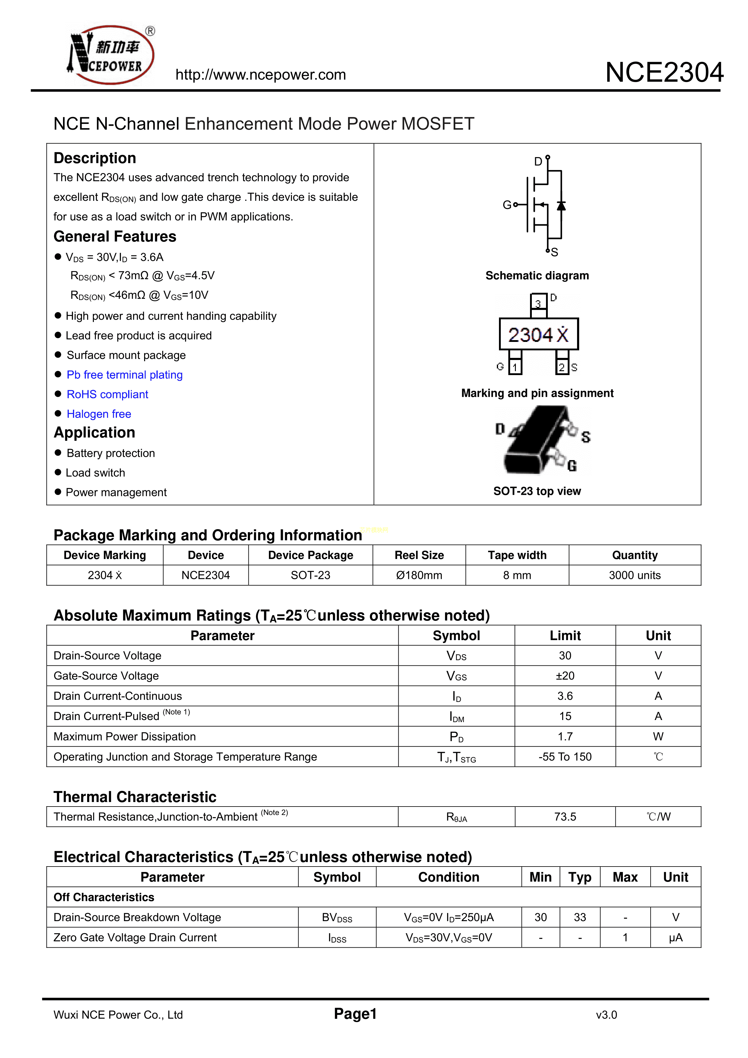 NCE2304PDF规格书,中英文下载
