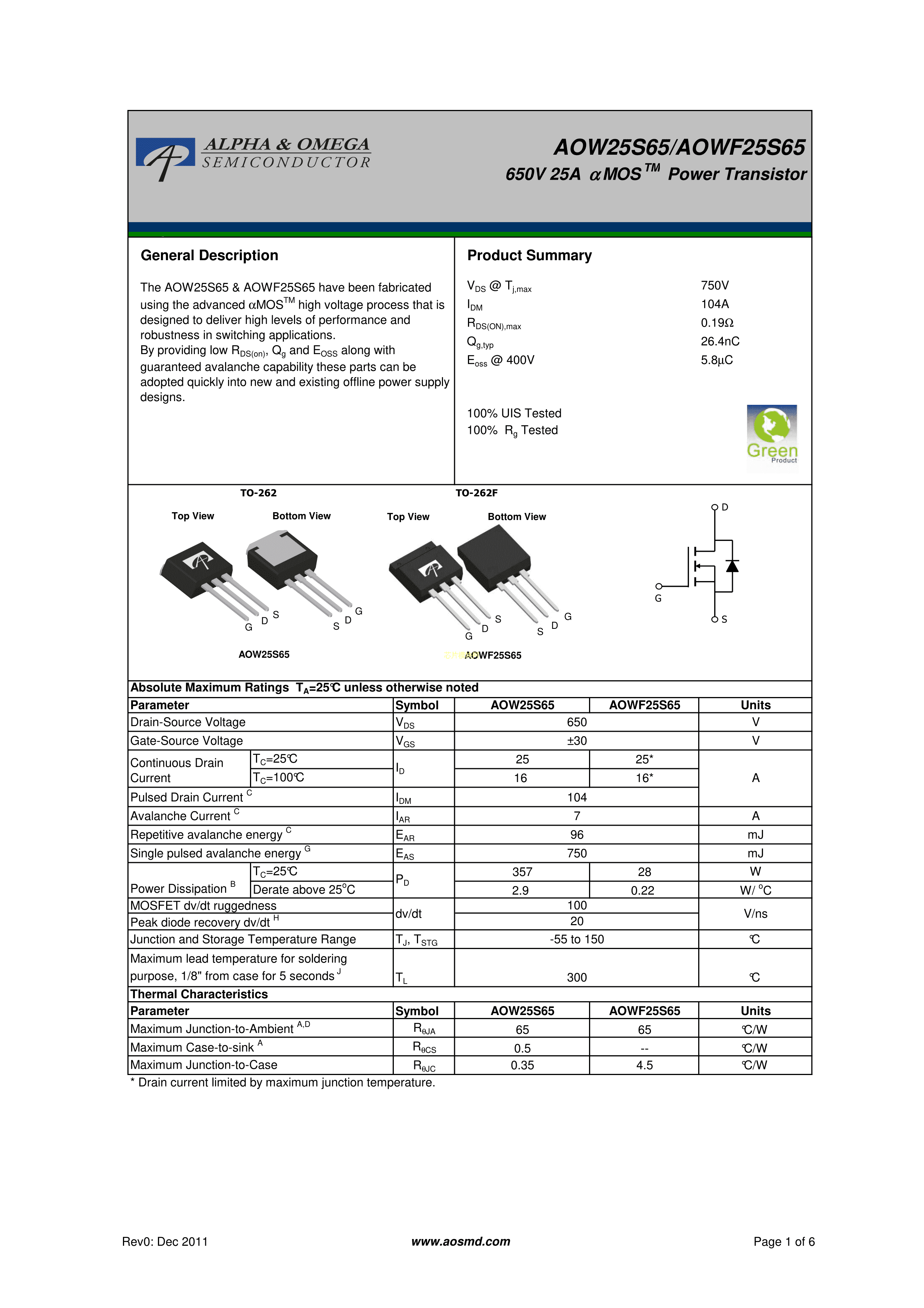 AOW25S65PDF规格书,中英文下载