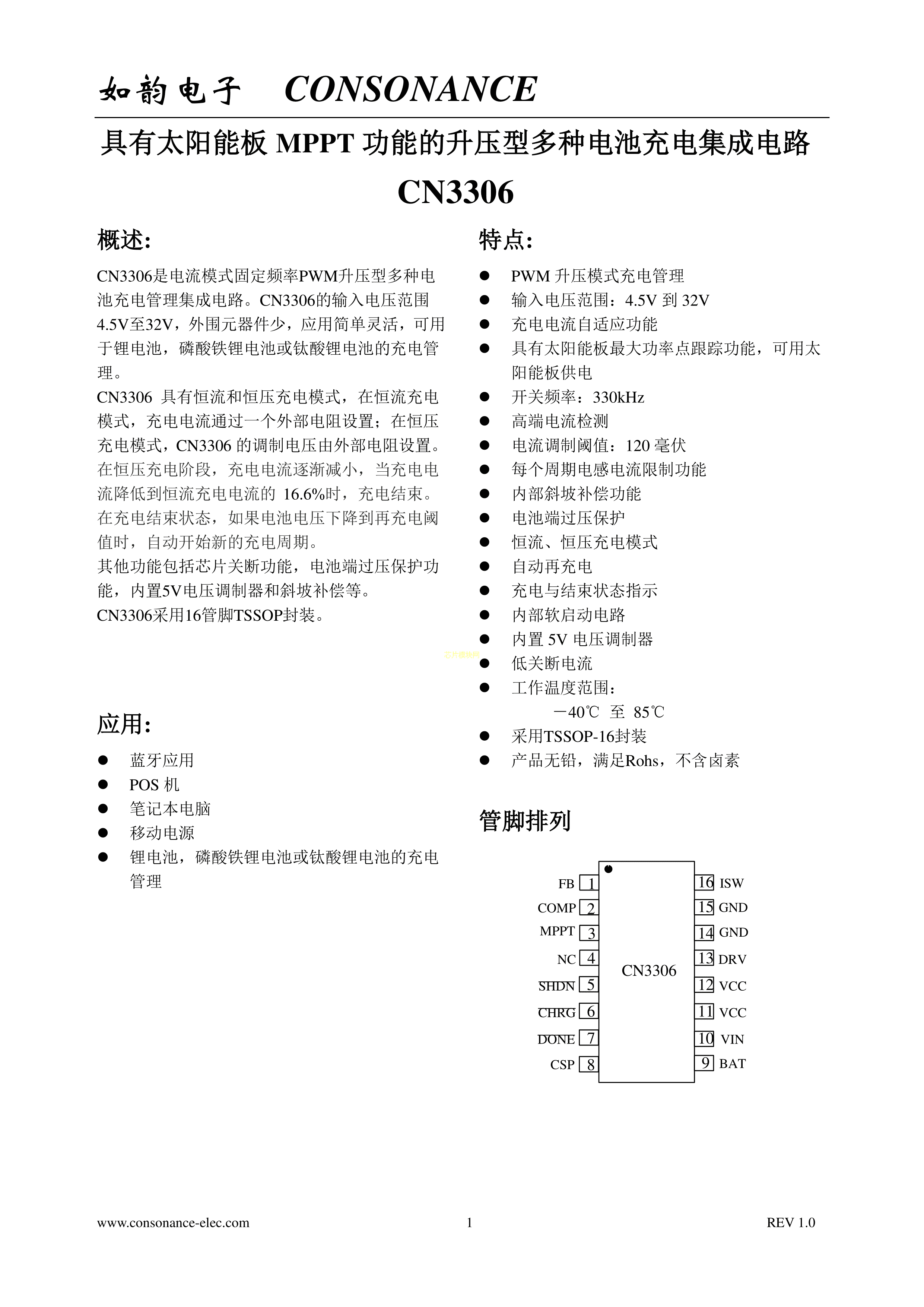 锂电池充电芯片CN3306PDF规格书,中英文下载