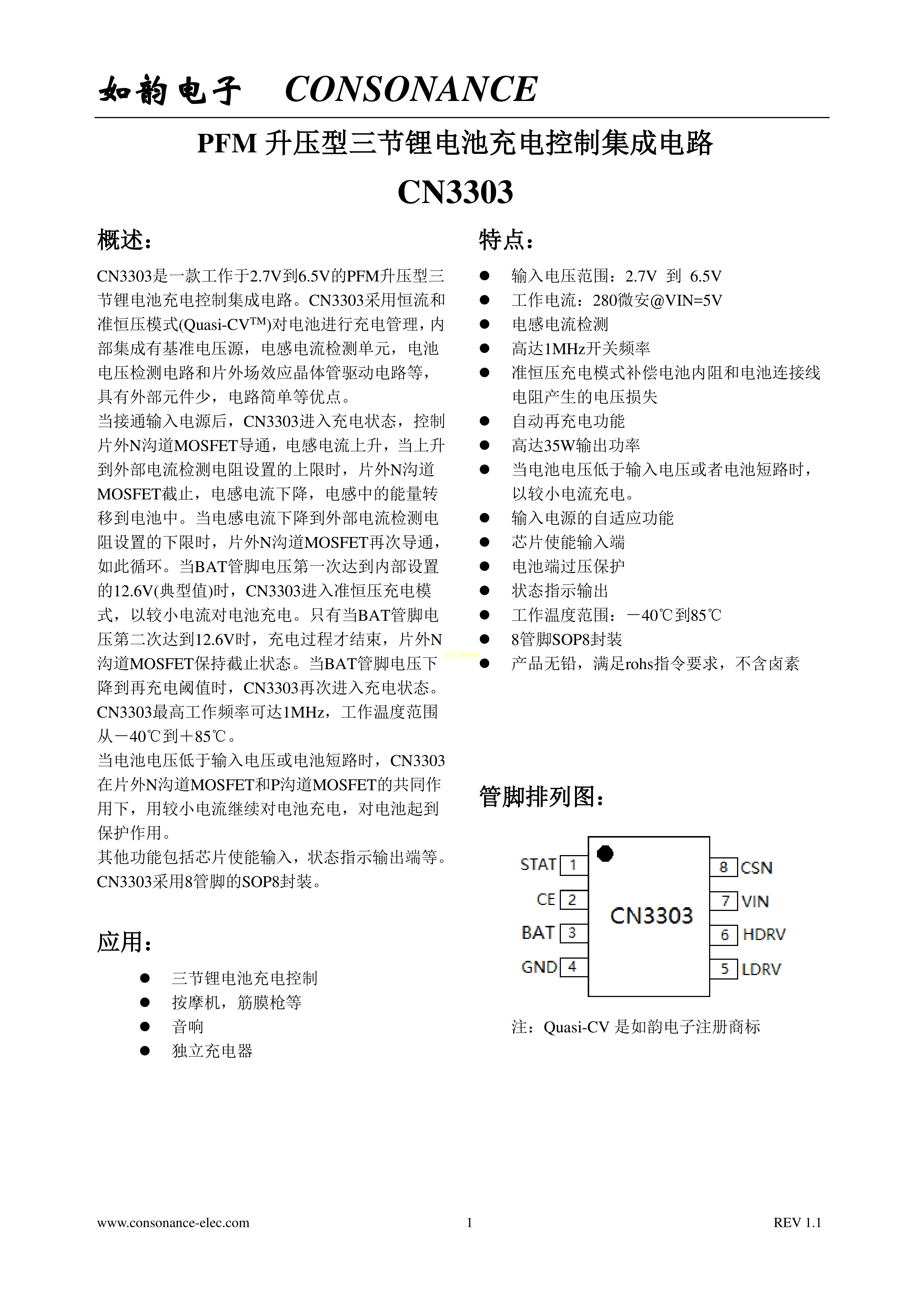 锂电池充电芯片CN3303PDF规格书,中英文下载