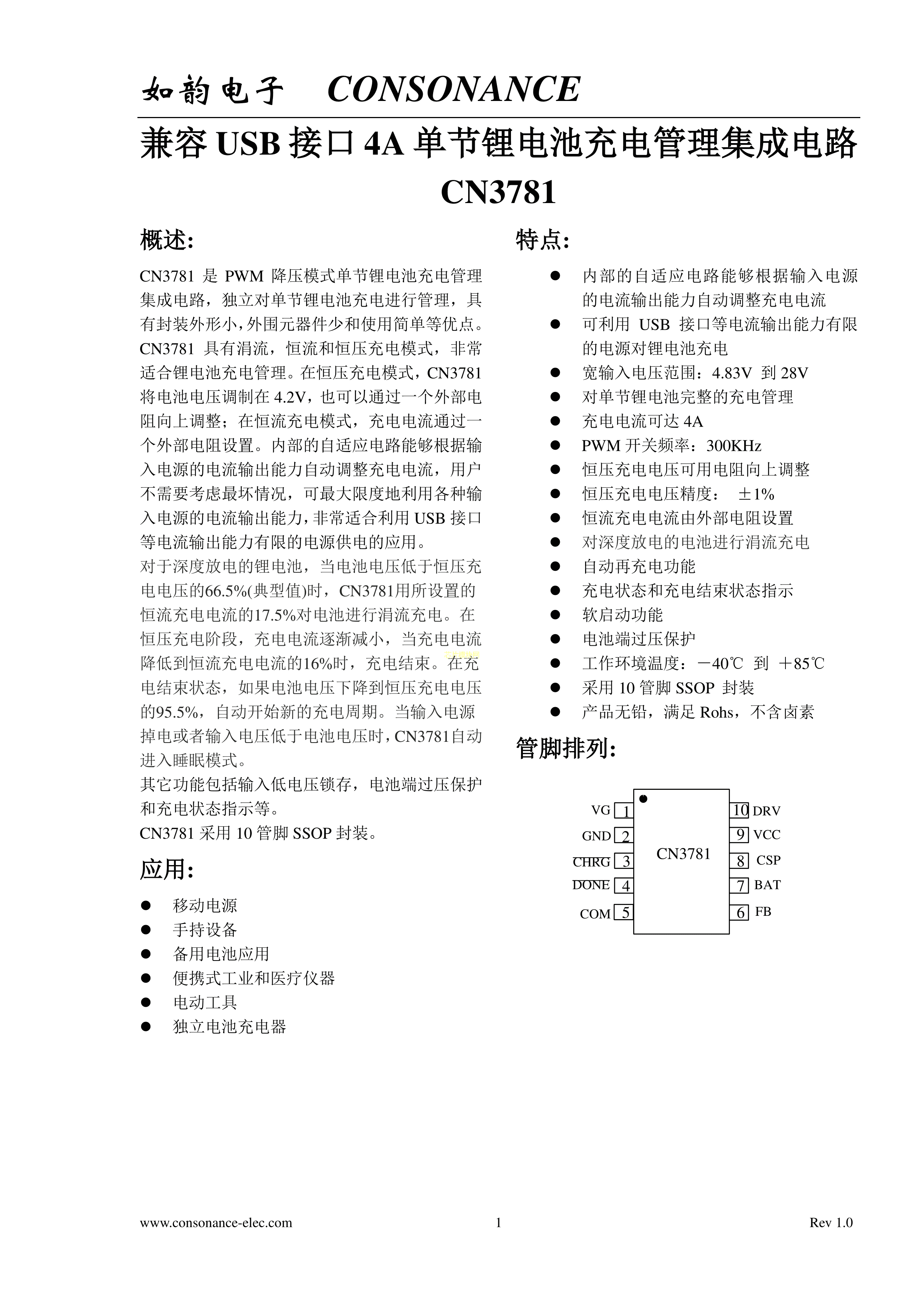 锂电池充电芯片CN3781PDF规格书,中英文下载