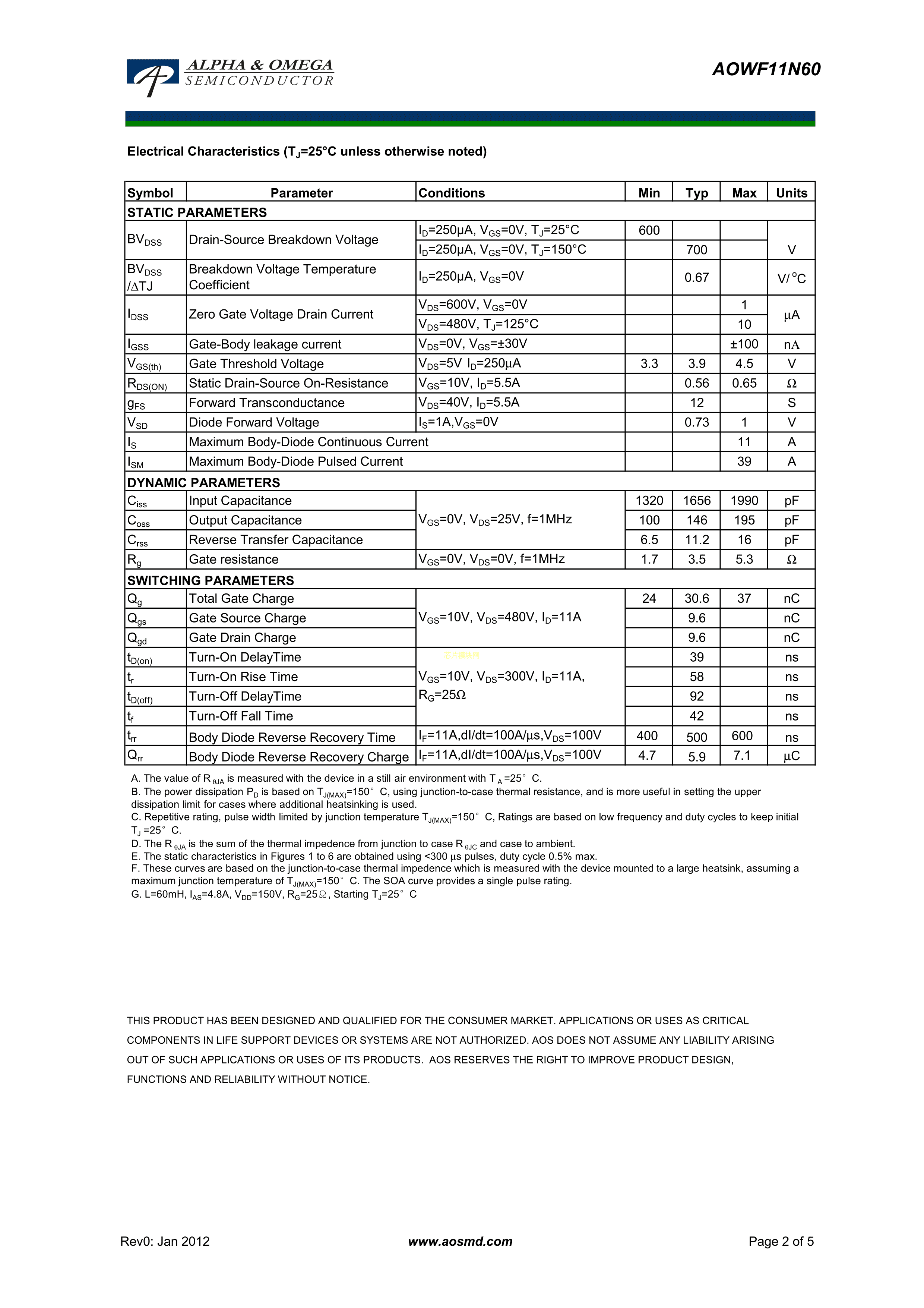 AOWF11N60PDF规格书,中英文下载